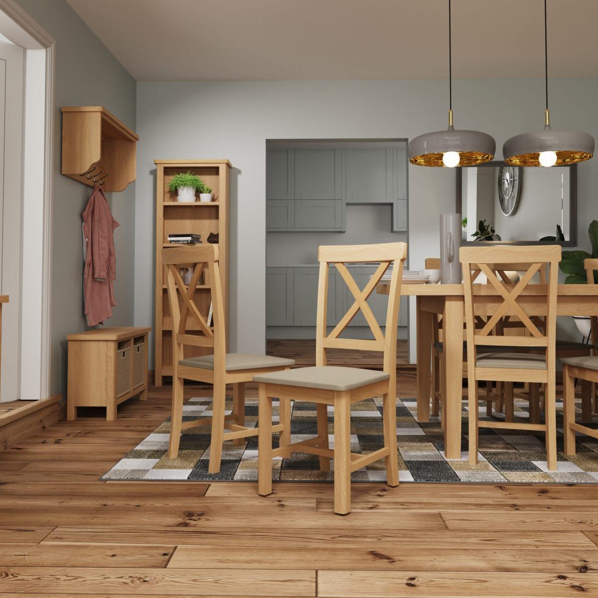 Rara Upholstered Cross Back Chairs - Rustic Oak (2 Pack)
