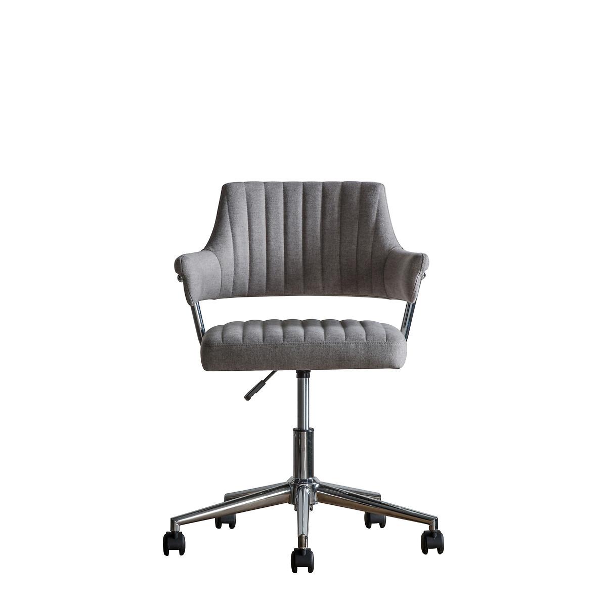 The Ratlam Swivel Chair offers contemporary style to add a unique on-trend look to a home office. The padded seat and back are upholstered in a lovely fabric with stitch detailing, and for practicality, the chair is on castors for easy manoeuvrability and has gas lift seat height adjustment. Composition: Fabric. Product Dimensions: 86.5cmx57.5cmx61.5cm. Please remember to measure your available space before ordering. Packaged Dimensions: 63cmx60cmx51 cm Weight: 10.1 kg. This product will be dispatched by one of our trusted suppliers. You’ll be contacted by their selected courier about your delivery. Please note: this product cannot be delivered to all Offshore Islands, Northern Ireland or Republic of Ireland.