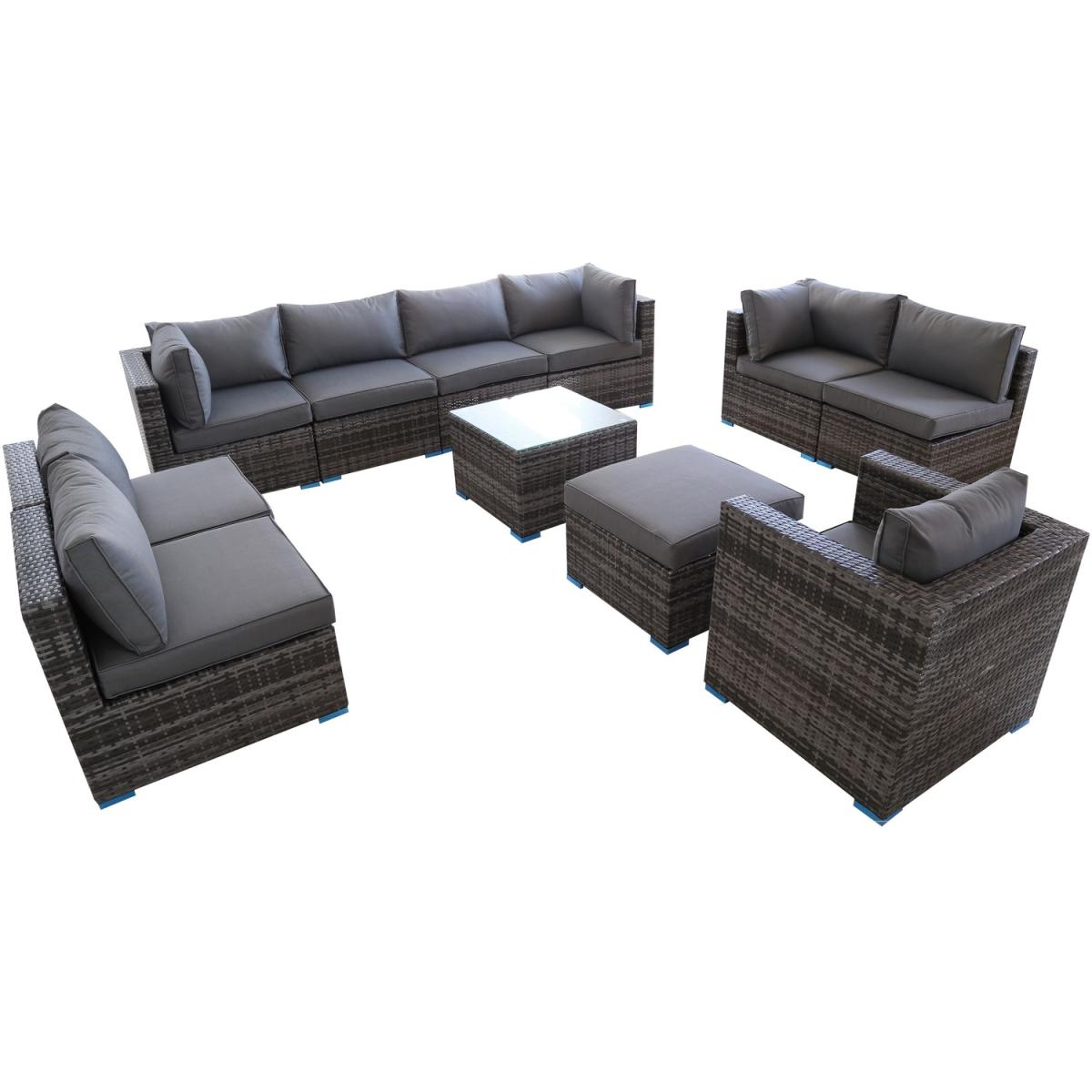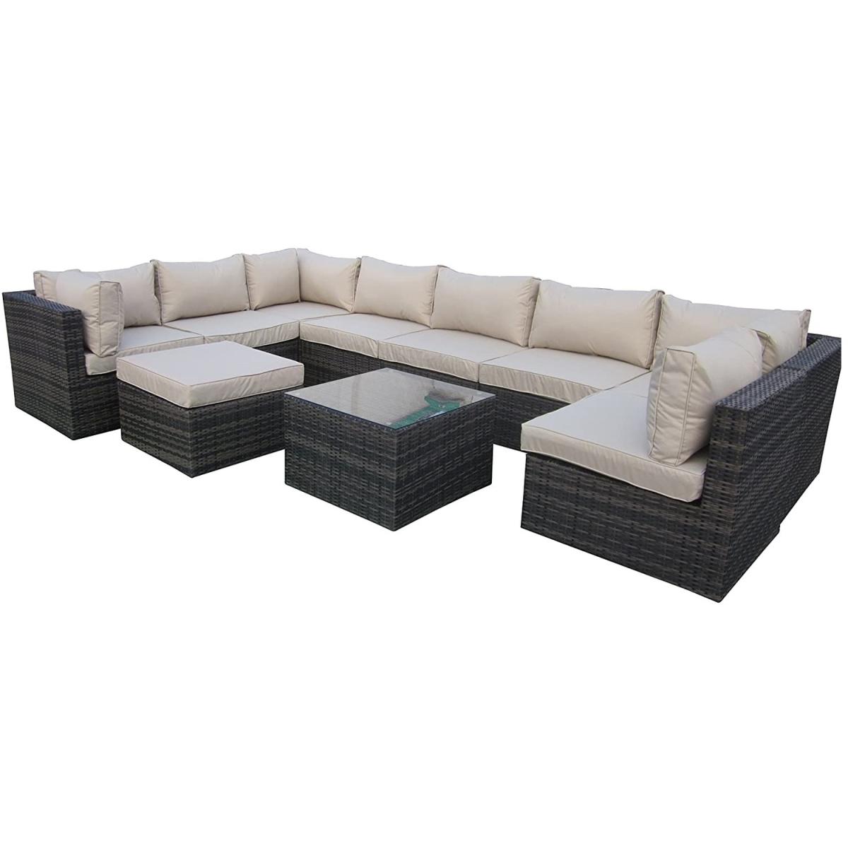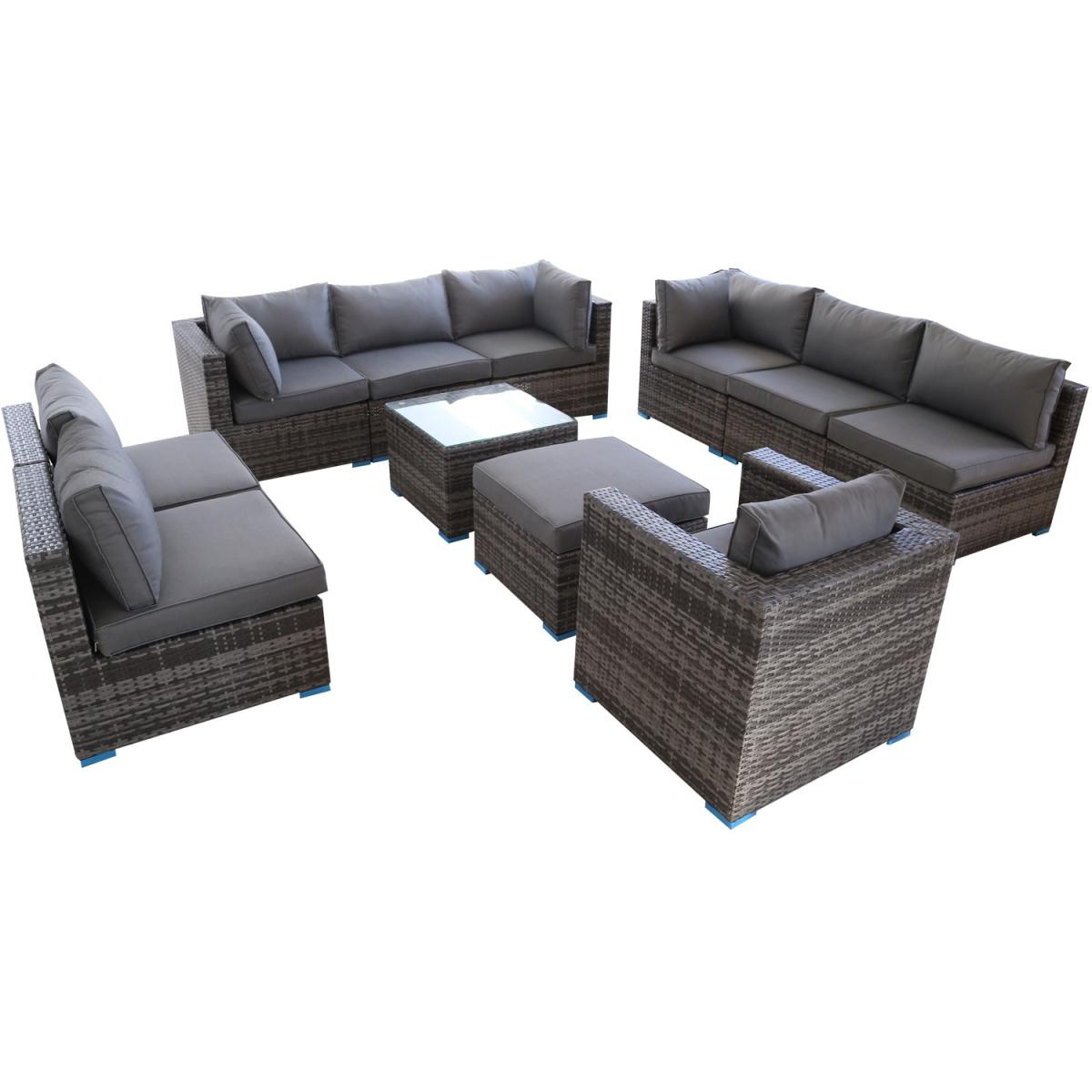 Rattan 10 Piece Modular Outdoor Garden Sofa - Mix Brown