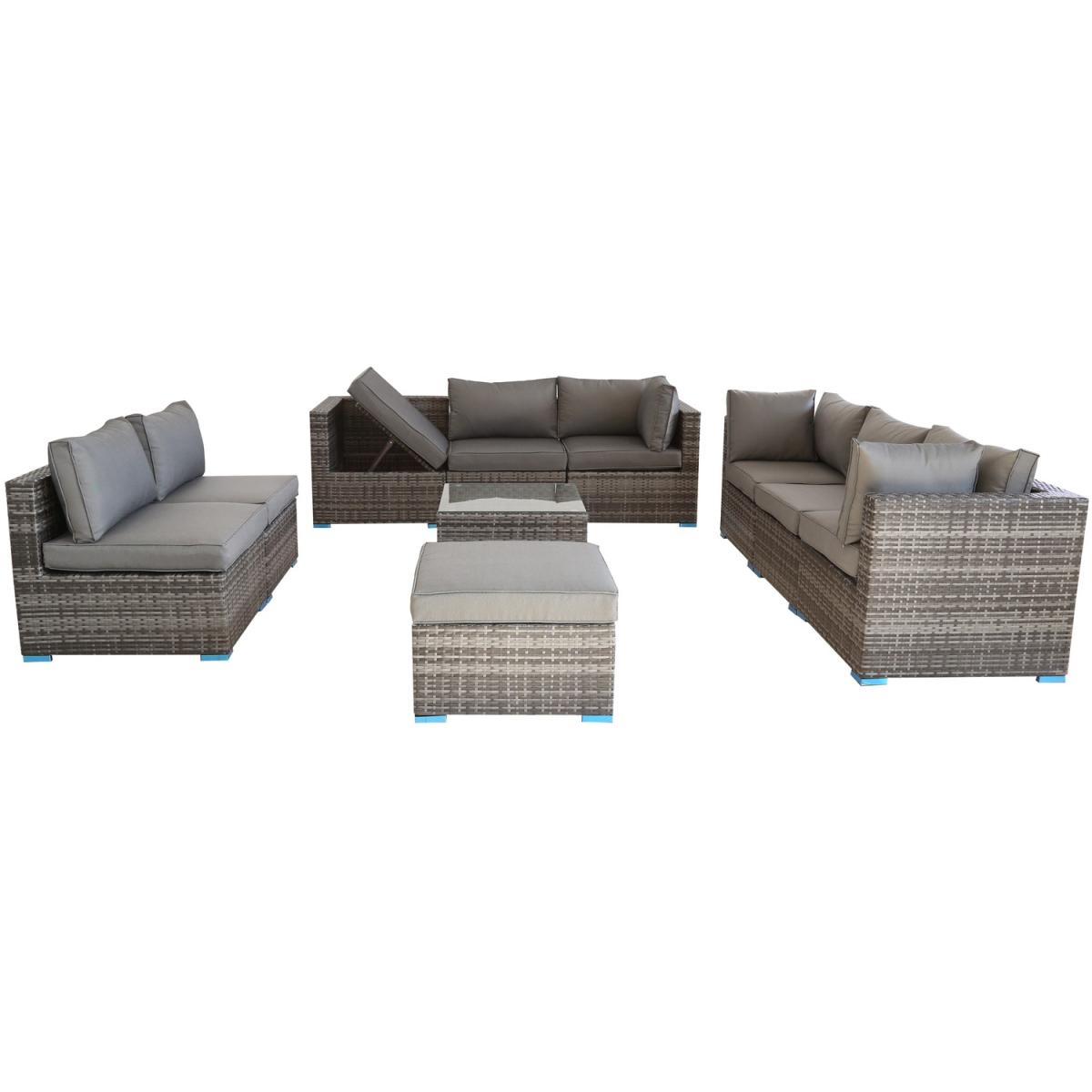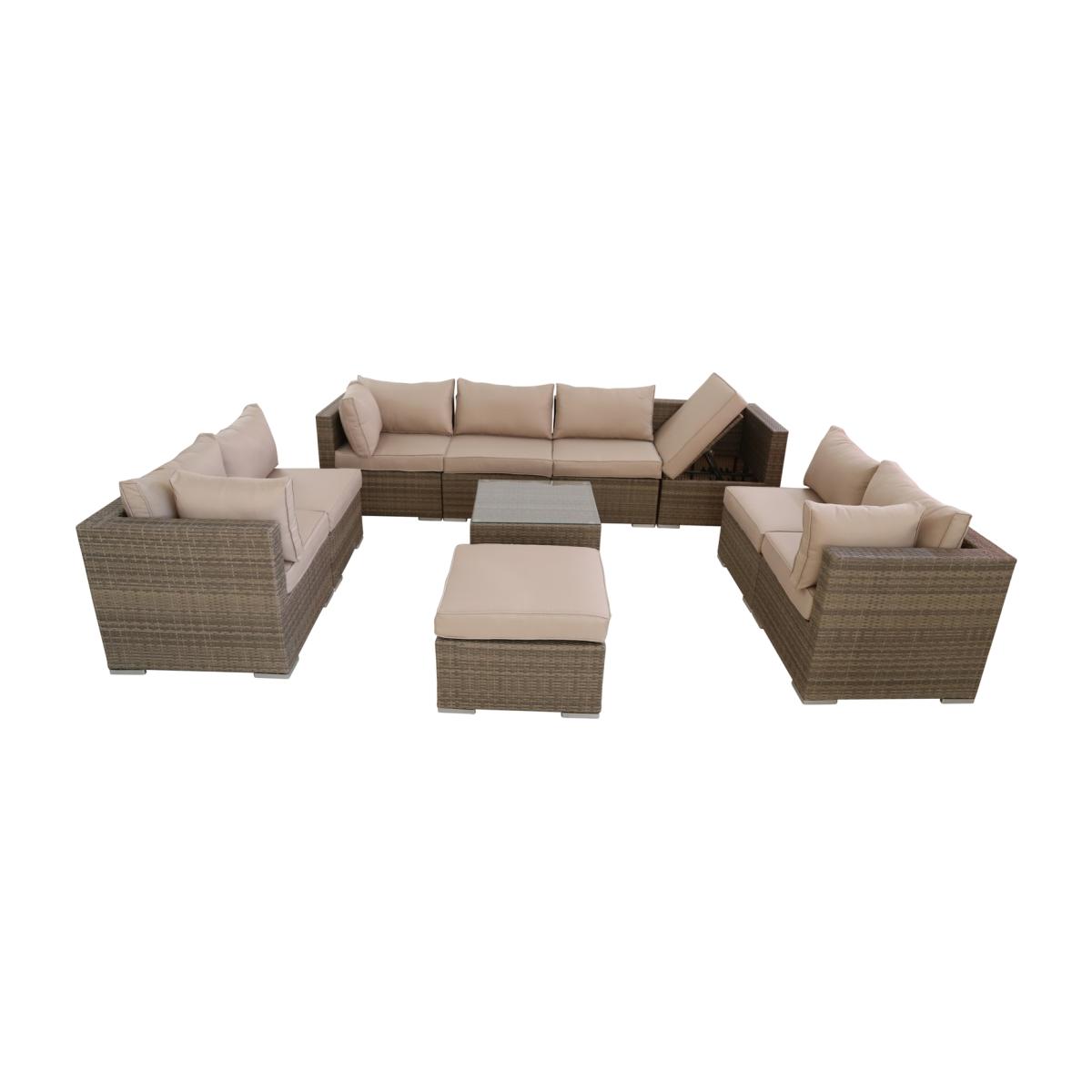 Rattan 10 Piece Modular Outdoor Recliner Garden Sofa - Nature
