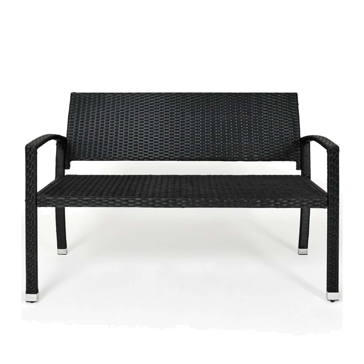 Rattan 2 Seater Garden Bench - Black