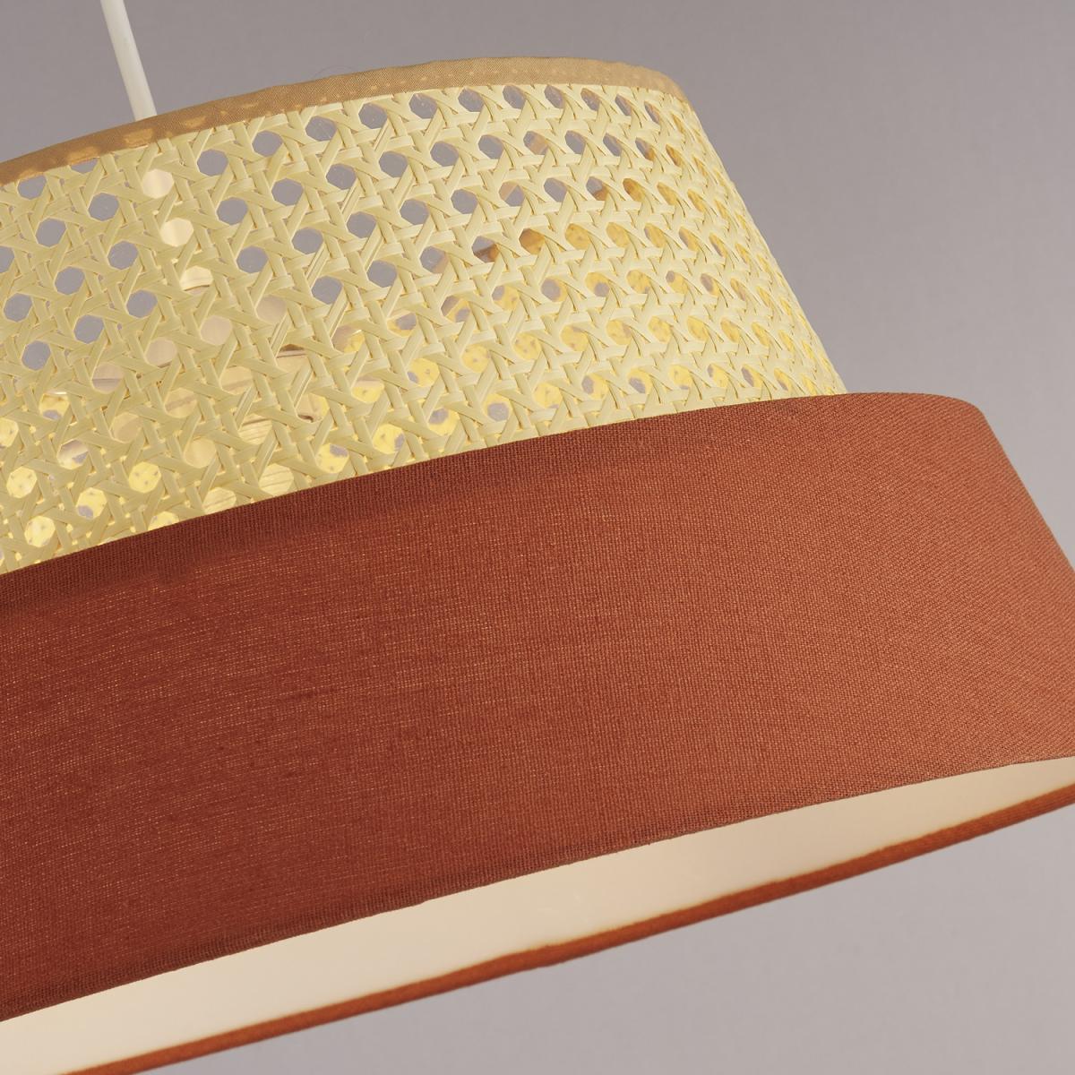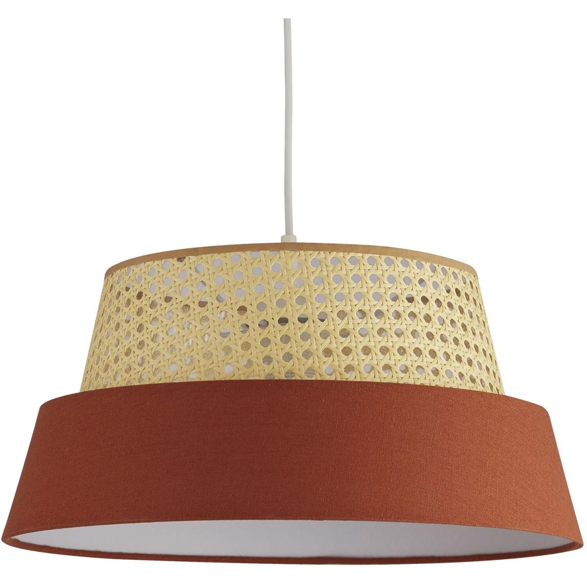 Create a stunning natural vibe in your home with this lamp shade. In rattan and orange linen, this 40cm diameter shade works as either a table, floor or ceiling lamp. Shade only, bulbs not included. We recommend E14, E27 or B22 10W bulbs.