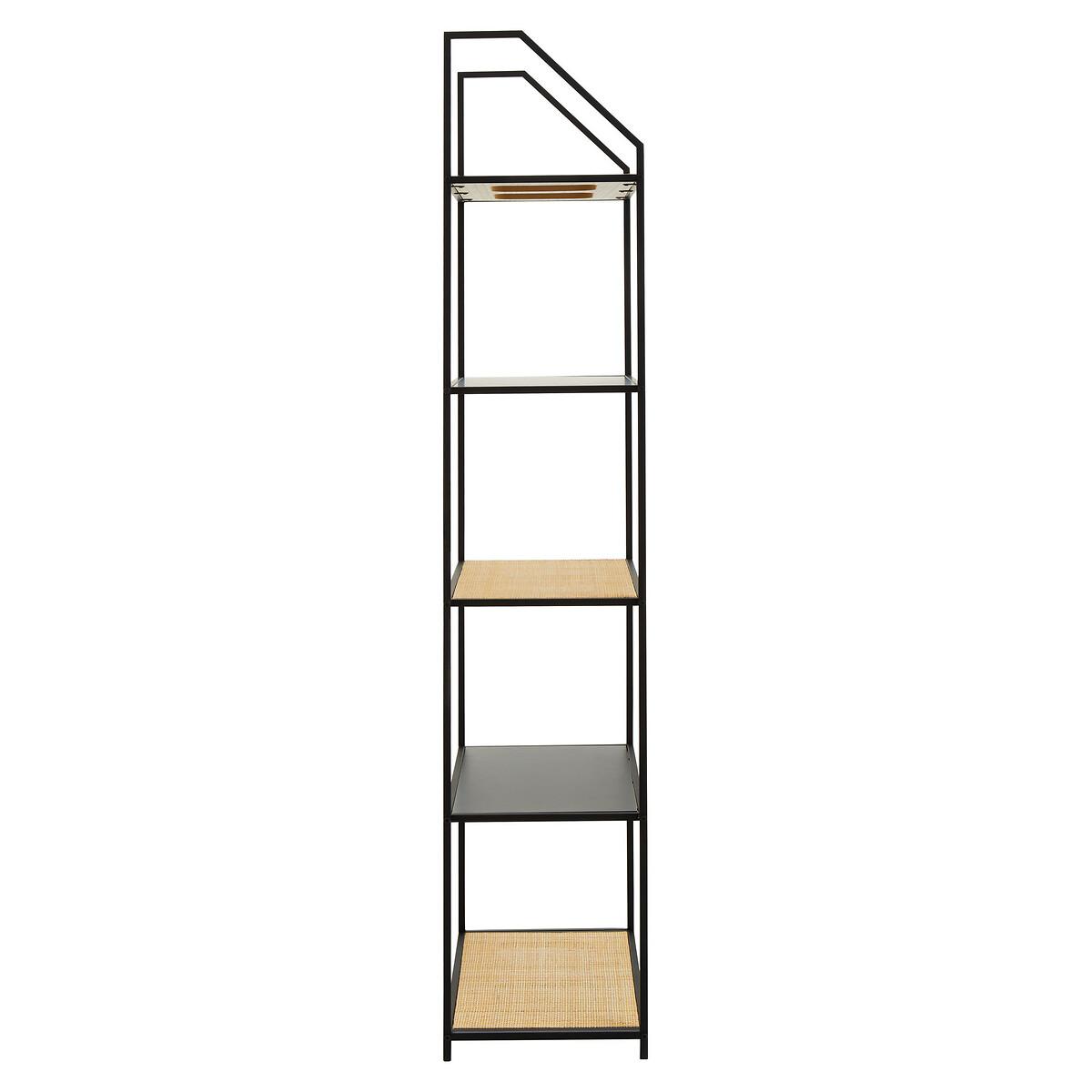 This five tier shelf unit is perfect for adding a modern and organic style to any room with a combination of black metal and natural rattan. Product details Assembly required Care instructions - dust with soft dry cloth Product Composition - Wood, PVCProduct Dimensions - 34 cm x61 cm x179 cm , Weight - 11.1 KGPackage Dimensions - 181 cm x 36 cm x 8 cm, Weight 12 kg. This product will be dispatched by one of our trusted suppliers. You’ll be contacted by their selected courier about your delivery. PREMI01