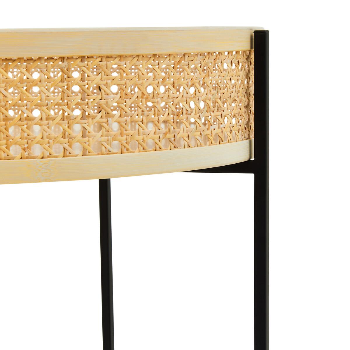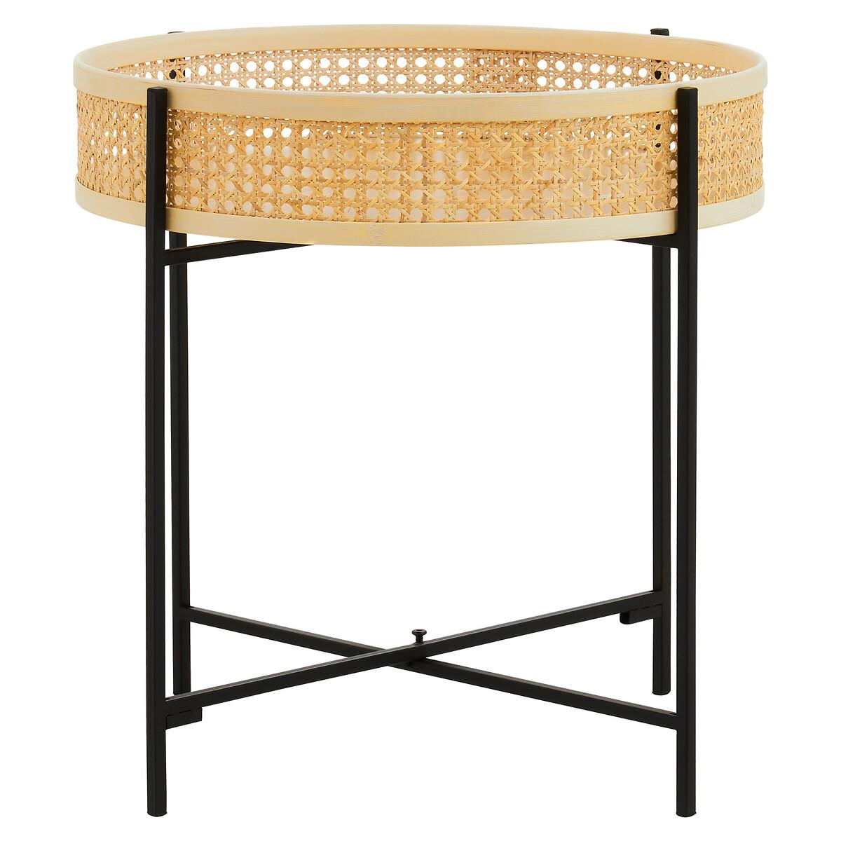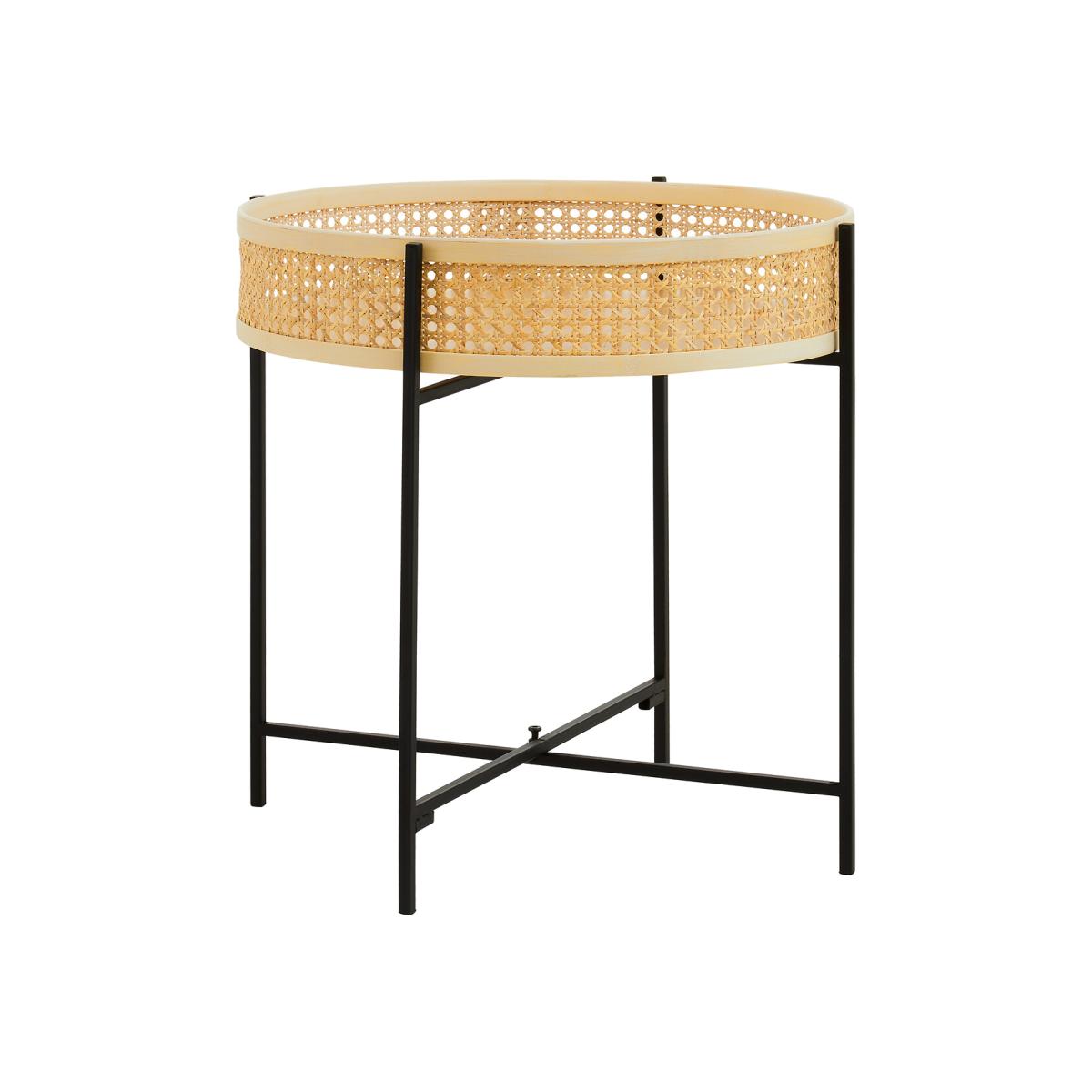 Made from natural rattan, this side table has a rounded body with hand woven French cane around the sides. It is supported with a sleek black metal cross base that adds stability and gives a contemporary look to the overall design. Product details Handcrafted Assembly required Care instructions Dust with dry and soft cloth. Product Composition - Wood, Rattan, Nylon. Product Dimensions - 55 cm x50 cm x50 cm , Weight - 2.7 kg. Package Dimensions - 52 cm x 50 cm x 15 cm, Weight 3 kg. This product will be dispatched by one of our trusted suppliers. You’ll be contacted by their selected courier about your delivery. PREMI01