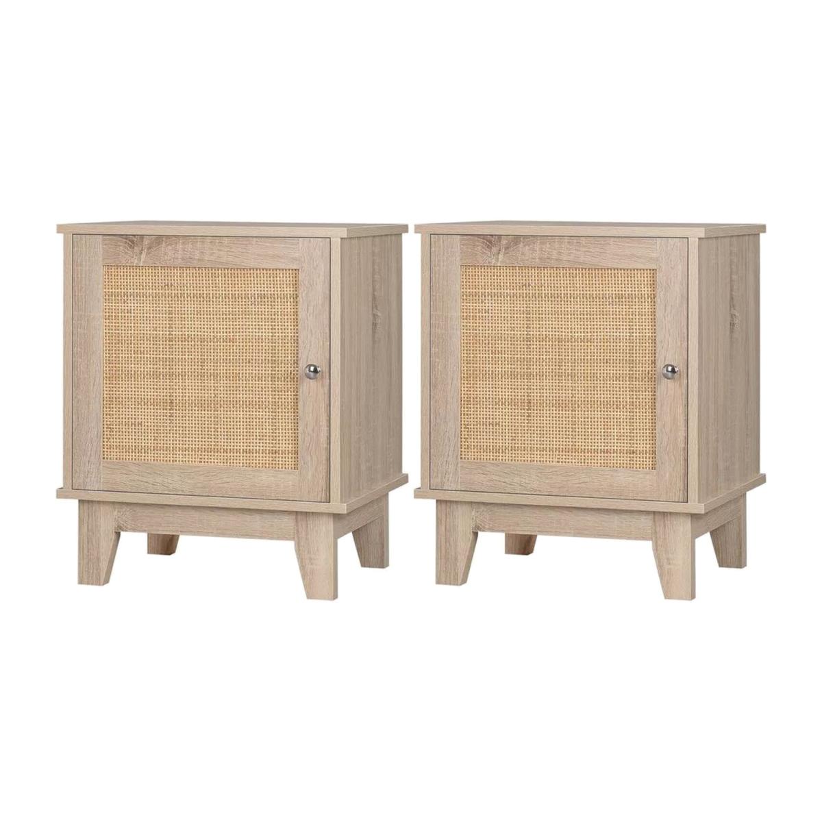 Rattan and Wood Set of 2 Bedside Tables - Natural