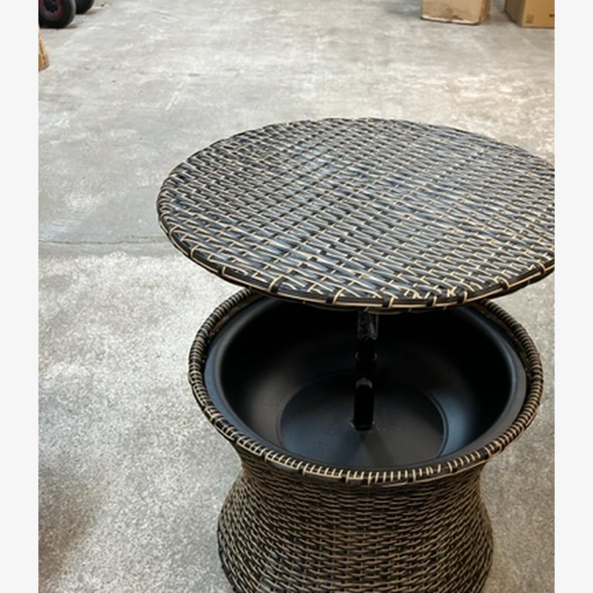 Our Bar table is both a modern-looking cocktail table and a handy cooler for hosting barbecues and outdoor events. Simply convert your side table by raising the lid to have it as a high bar table and fill the cooler with ice and drinks. 3 in 1 garden accessory that can be used as side table, ice box with 30. L capacity or bar table which is created by easily pulling up and locking in place.