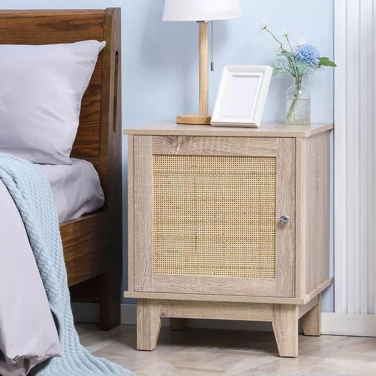 This beautiful rattan bedside table offers a charming blend of style and functionality. Featuring a practical storage compartment, it provides ample space for your night-time essentials, while the woven design adds a touch of texture and warmth to your bedroom. Perfect for coastal or bohemian-inspired interiors, this bedside table enhances your dor with its natural appeal. Durable and stylish, it serves as both a practical storage solution and an eye-catching decorative piece.