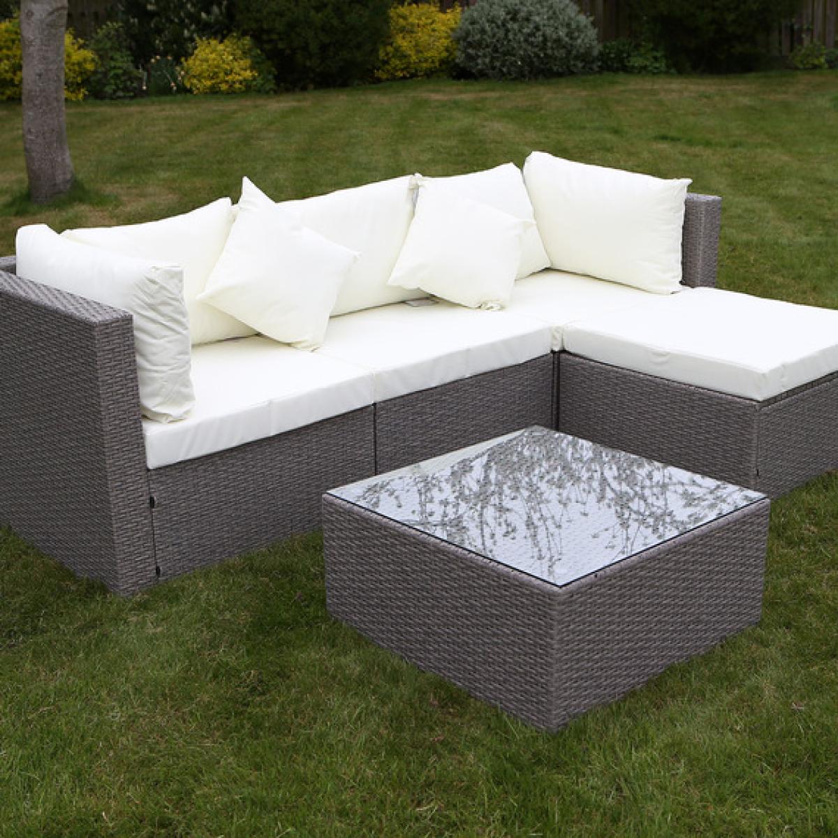 Rattan Corner Sofa 4 Seater Garden Furniture Set with Coffee Table - Grey