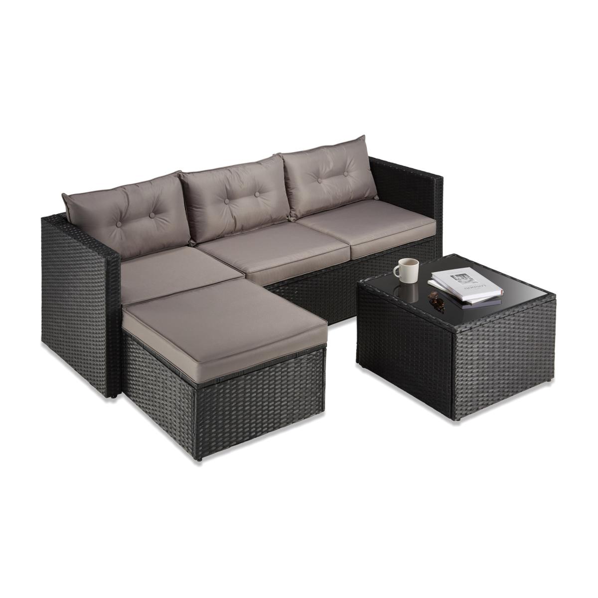 VonHaus Antigua Garden Corner Sofa Set. Create a cosy corner hub in your garden. Ease meets elegance in the Von Haus Antigua rattan corner sofa, sure to elevate your al fresco lounging. The robust steel frame is encased in PE rattan, providing all the charm of traditional woven wicker but without the excessive maintenance! Water, UV, and fade resistant, upgrade your garden today. Modular garden furniture is the perfect way to maximise smaller gardens, making it super easy to craft an outdoor space that works for you. Either create an inviting corner sofa set or put the footstool apart and put your feet up. Whichever set up you choose, the anti-slip rubber feet keep the set in place whilst keeping your patio scuff-free. When it is time for a refresh, simply wipe down the tempered glass tabletop and pop the removable cushion covers in the washing machine. Jobs a good un!