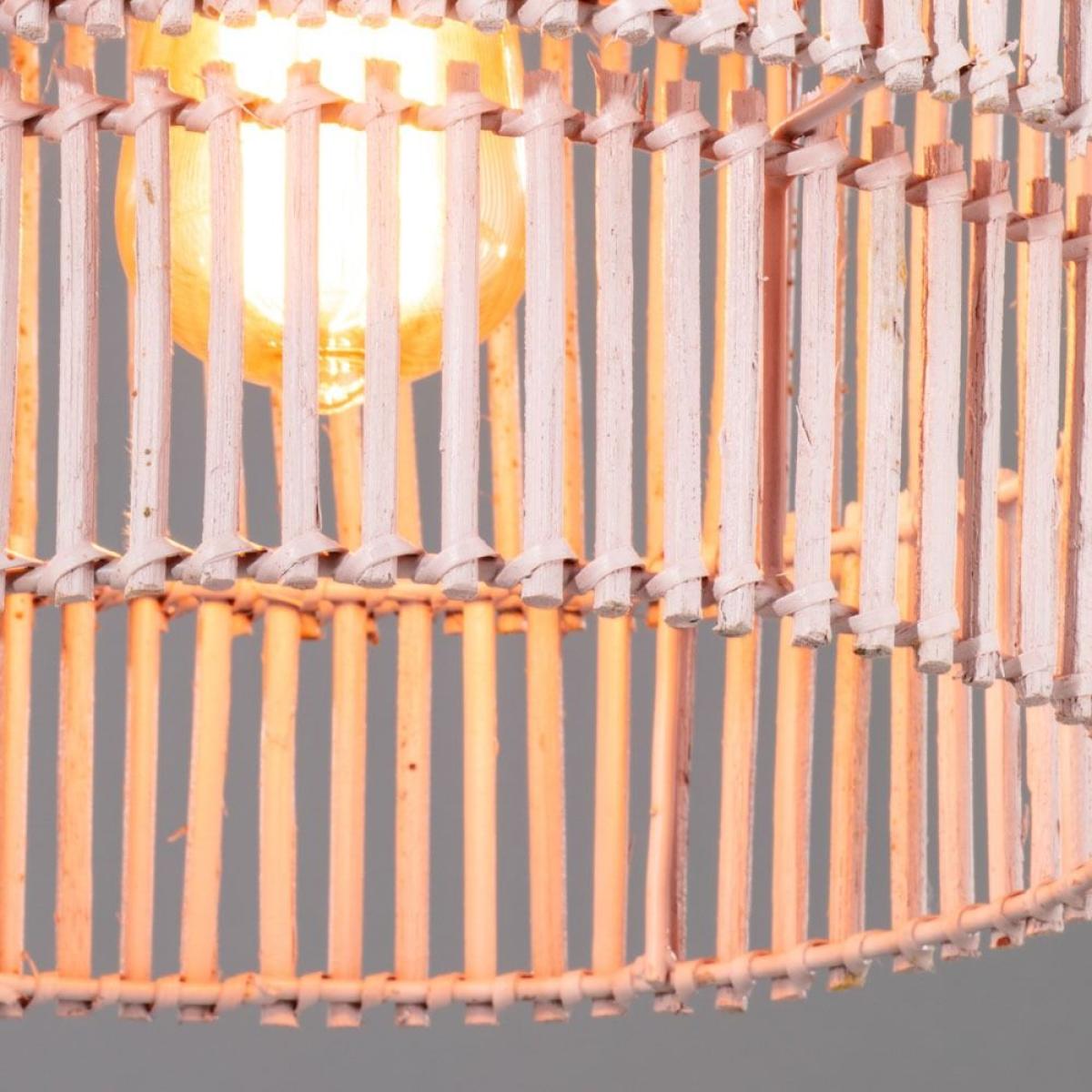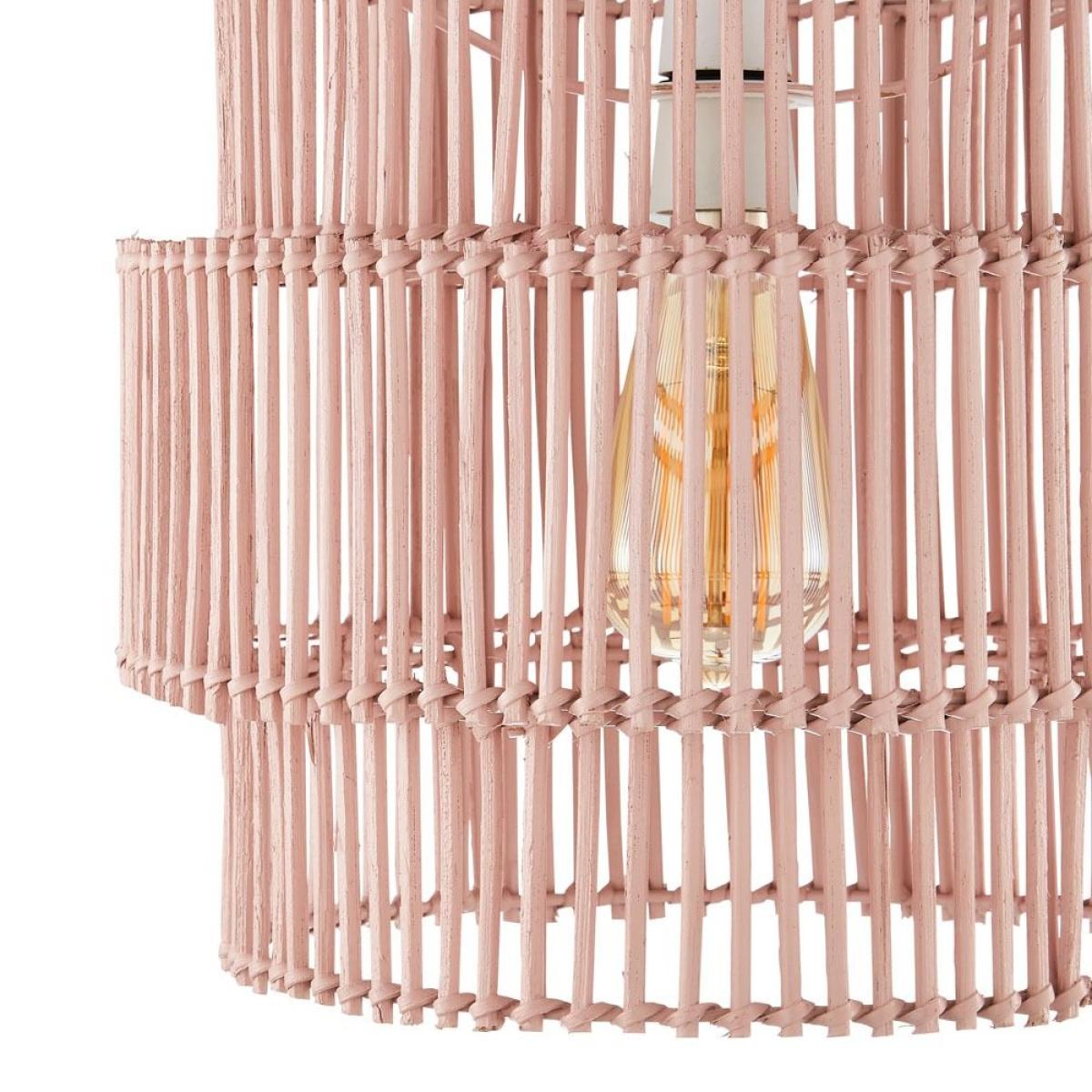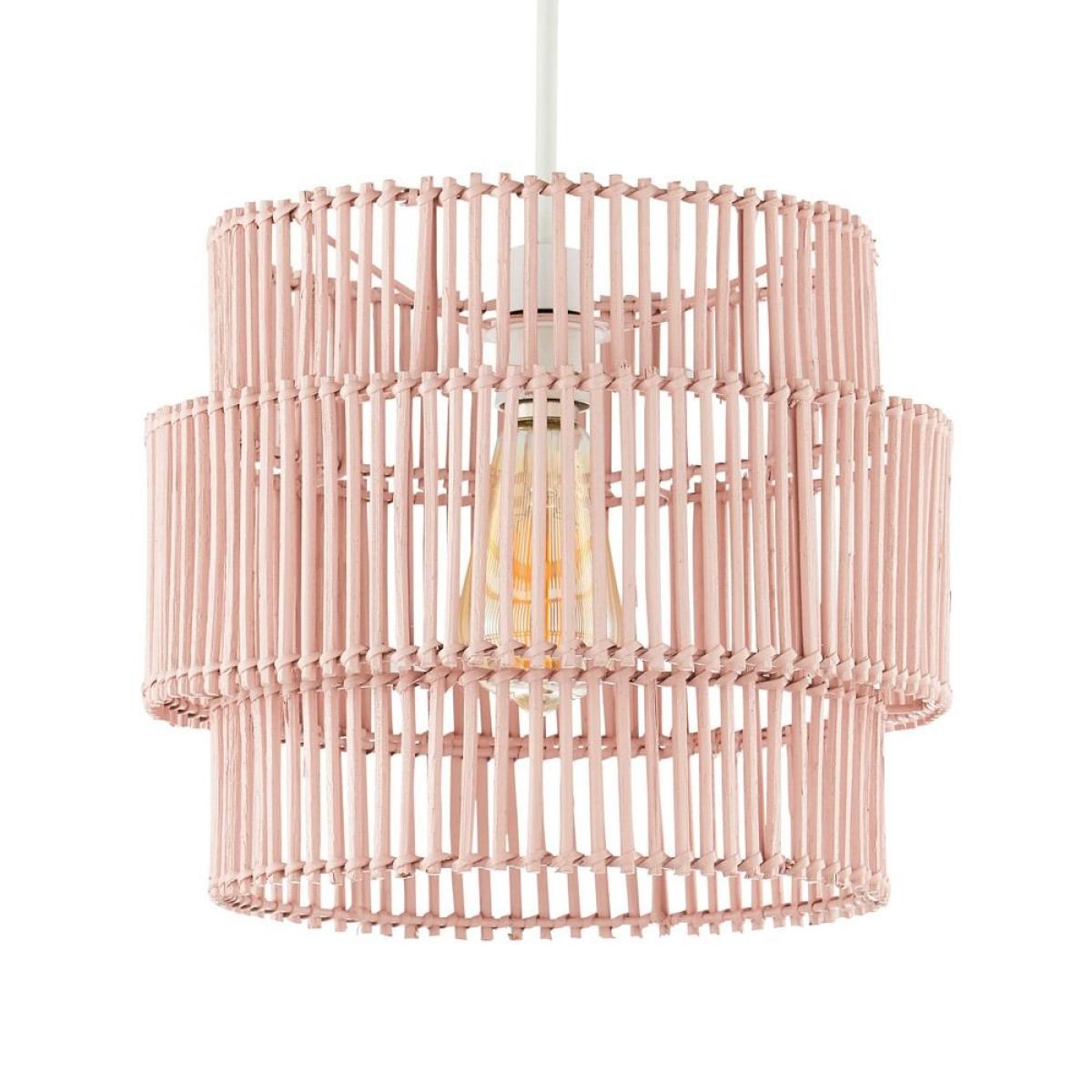 I love this pink rattan shade for its playful yet sophisticated appeal. Its double-cylinder design adds visual interest and texture, making it ideal for a variety of interiors from boho-chic to modern playful schemes. It works particularly well in spaces with neutral palettes or soft colour themes, where it can add a subtle pop of colour without overwhelming. Styling tip: hang it in a kitchen or dining area for a cosy, inviting glow - pairing it with other rattan or natural wood accents enhances its organic feel. For a more contemporary look, combine it with matte black or brass hardware to make the pink pop even more. It's a versatile piece that adds a touch of colour and texture to any room, perfect for creating a lively yet relaxed atmosphere.