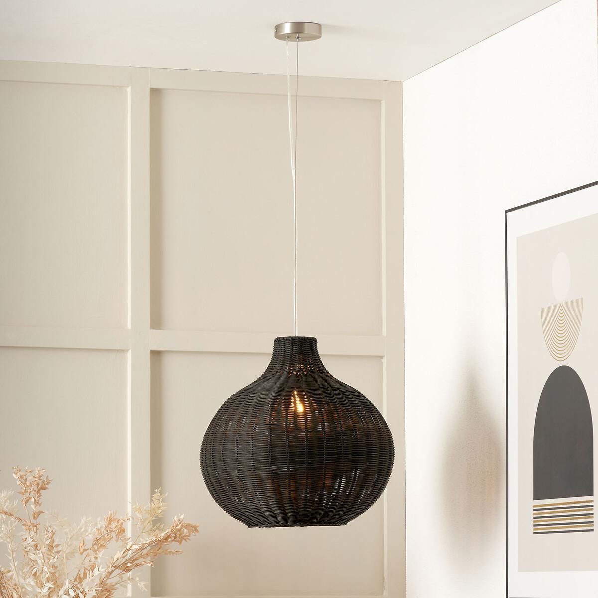 Introducing our stylish, woven rattan ceiling pendant in a sophisticated colour. Its elegant proportions and delicate curves will make it a statement piece in your interior. Elevate your home with this tasteful and tactile addition. Available in Grey, Black & Natural Rattan.