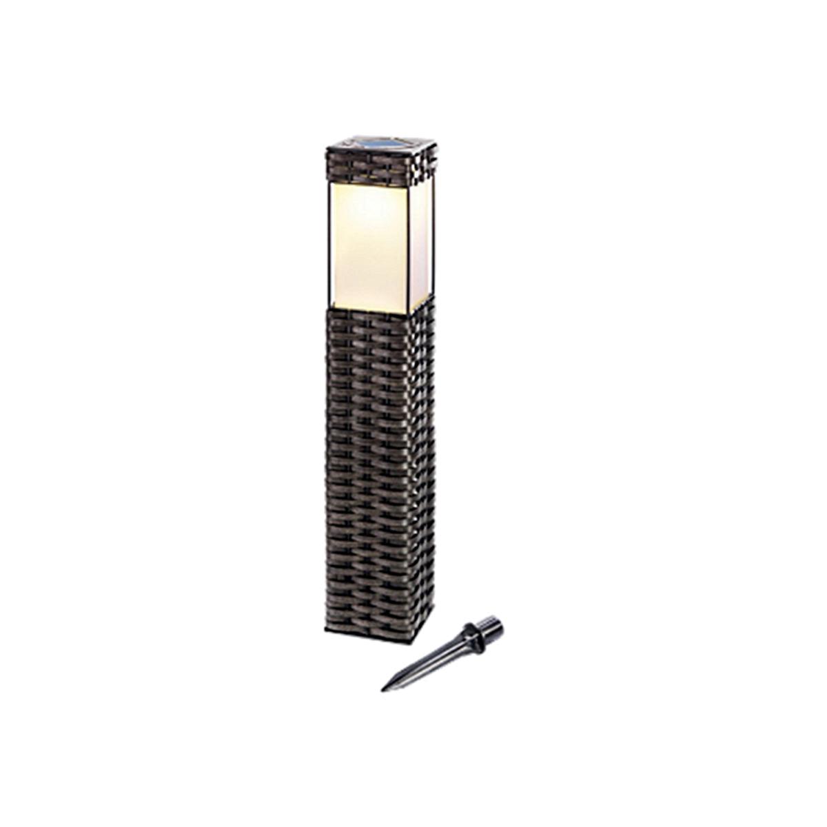 This Solar LED Bollard has a square pillar shaped metal frame with hand woven brown PE plastic rattan. It is provided with a ground spike on which the ground plate can be mounted, alternatively the ground plate can be fixed with screws. The waterproof design makes this bollard ideal for illuminating outdoor areas, such as garden paths, borders, etc. The high quality solar panel charges the battery in 6 to 8 hours and provides the same, 6 to 8 hours of operation. Once the onoff switch is turned on, the lantern will automatically turn on at night and off during the day, when it will recharge.