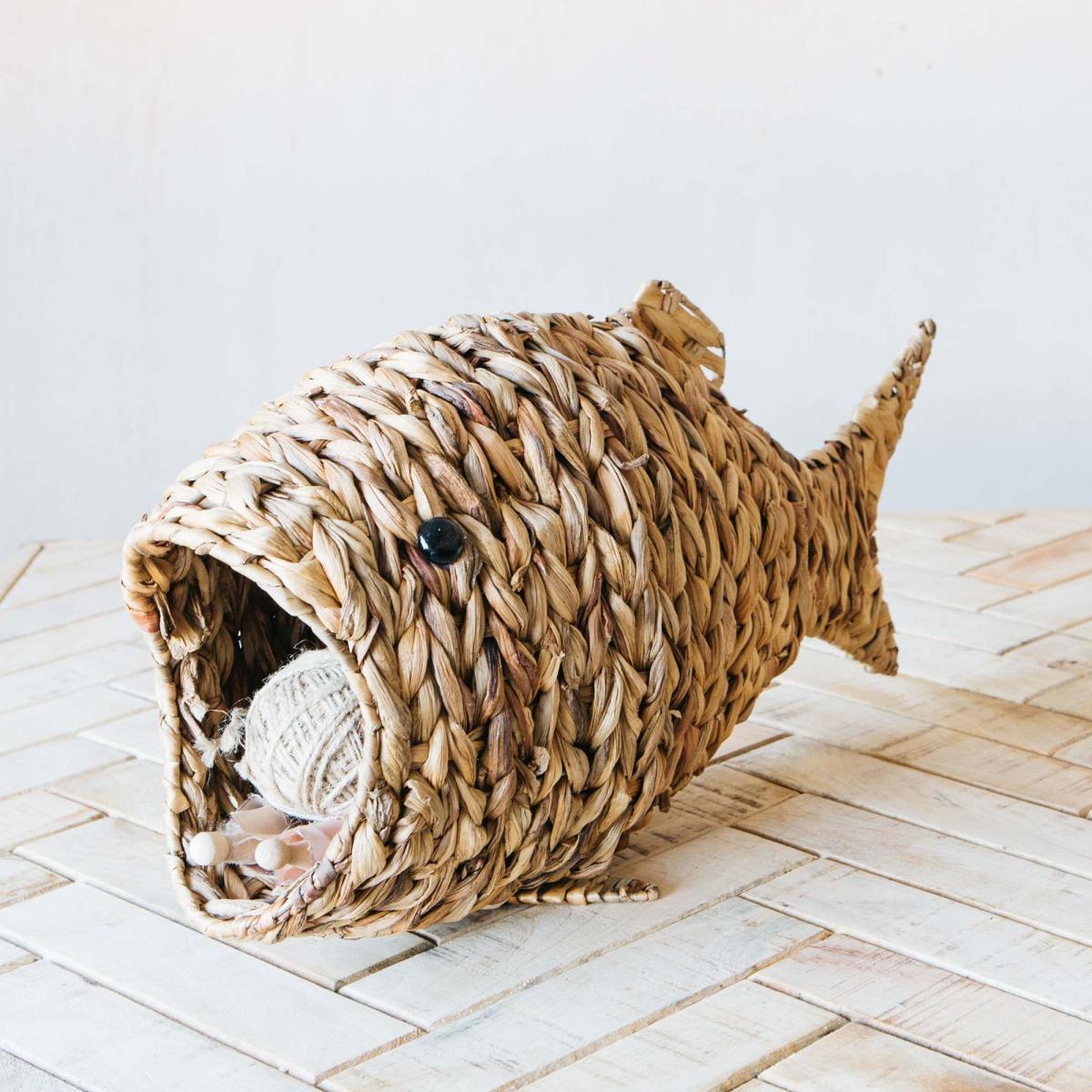 I love the fish basket for its playful yet natural aesthetic - it adds a touch of maritime charm to any space. Ideal for coastal or boho interiors, this basket works well as a quirky storage piece or decorative item on shelves or side tables. To style it effectively, consider placing it in a casual setting with other woven or rustic textures, using it to store small items like keys, mail, or even pet toys. Its eye-catching design also makes it a fun focal point, so don’t shy away from leaving it visible in open shelving or on a console. Just keep in mind that it functions best in less cluttered spaces where its unique shape can be appreciated without competing with other statement pieces.