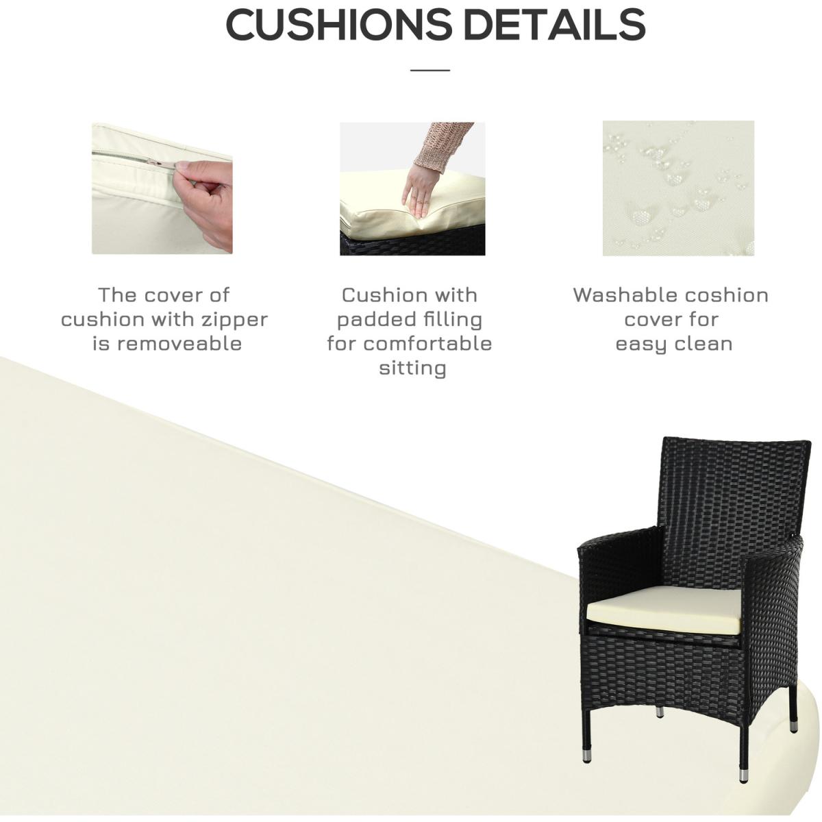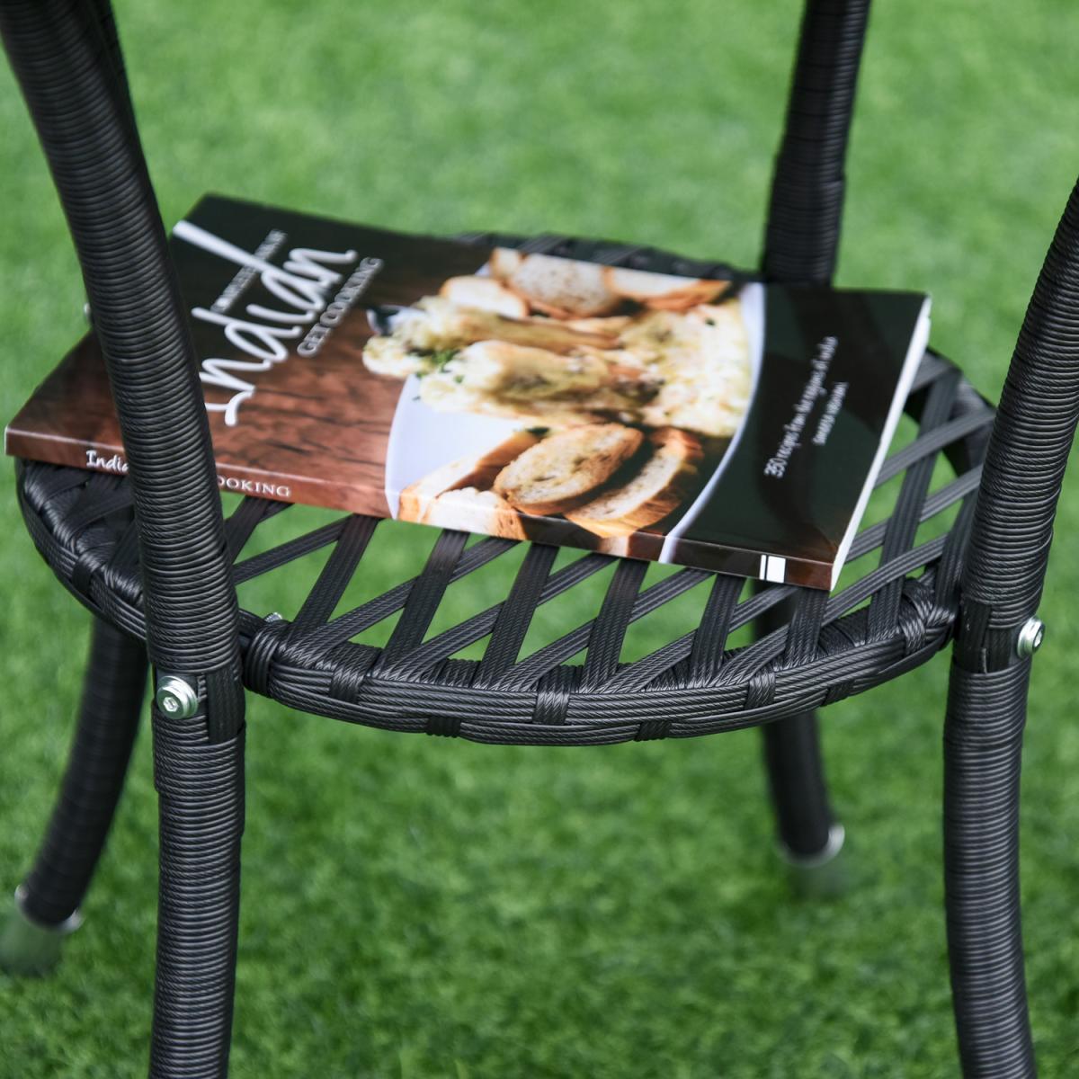 I really like this bistro set for its sleek black rattan finish, which adds a modern yet natural touch to outdoor spaces. It's versatile enough to work well in garden patios, balcony corners, or even a conservatory dining area, especially if you're after a contemporary look. To style it effectively, consider adding cushions in muted tones or subtle patterns to soften the look and enhance comfort. Incorporating potted plants or string lights can make the setup inviting without overwhelming its minimalist appeal. Practical tips include placing a weatherproof tablecloth for easy cleaning and layering with a light outdoor rug underneath to define the space and add a splash of colour or texture. Overall, it’s a stylish choice that balances durability with modern appeal.