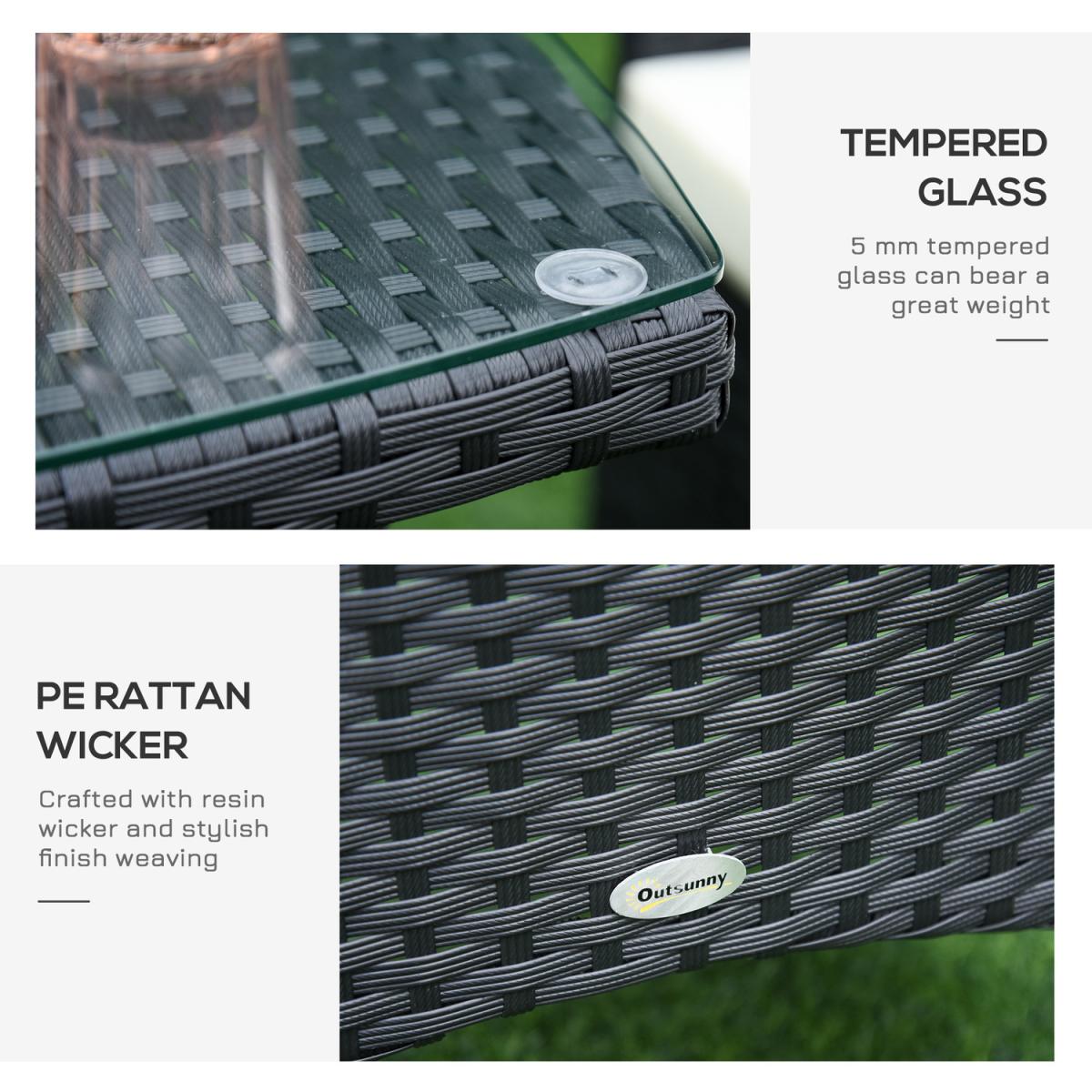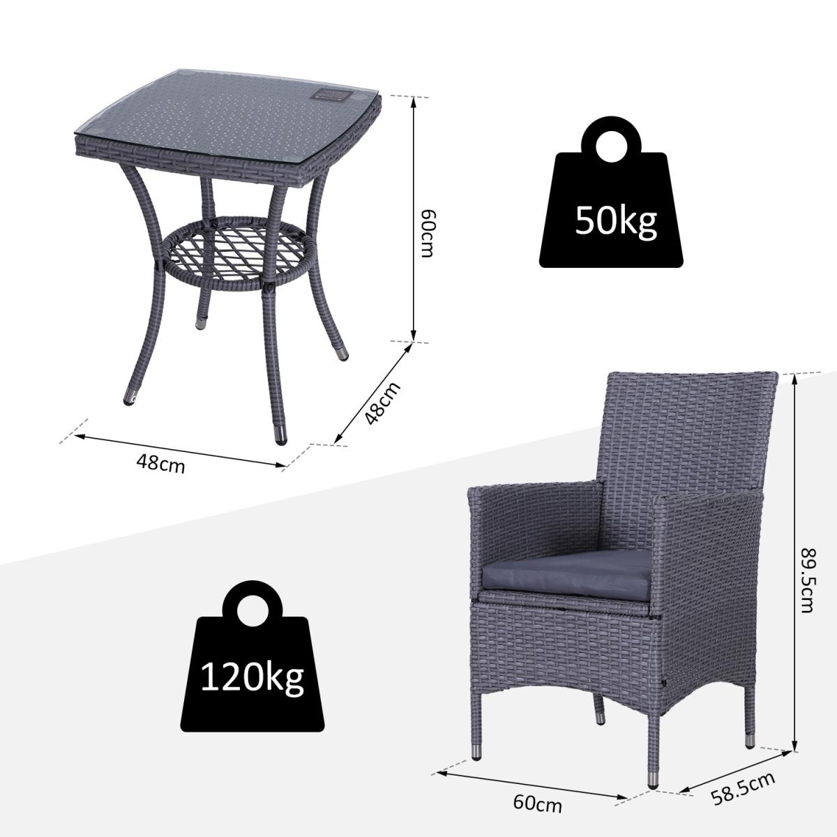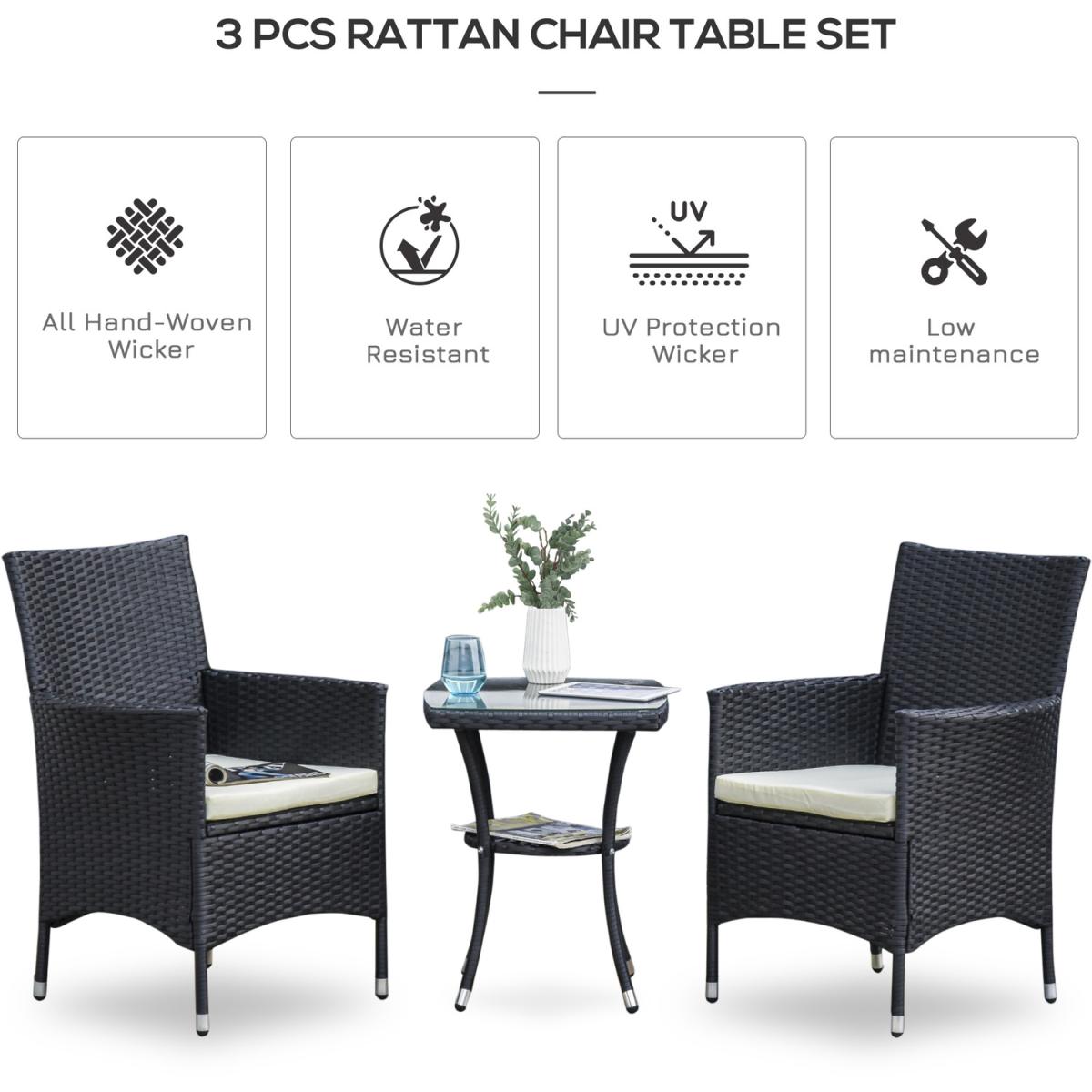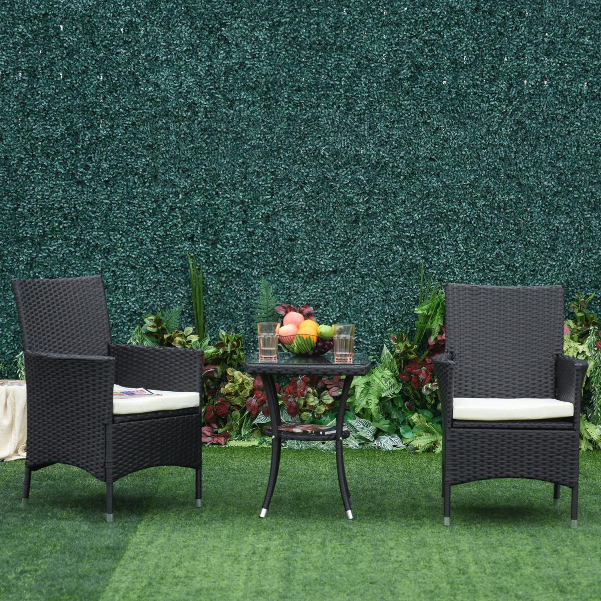 Outsunny 3pcs furniture set perfect as a conversation set for any patio, deck, sunroom, or garden, our Outsunny rattan coffee table and chairs will create a classic centrepiece in any setting. Made from PE wicker rattan, this set is UV resistant, water-resistant, and is built to last. These lightweight chairs and table are easily movable and simple to store as the seasons come and go.