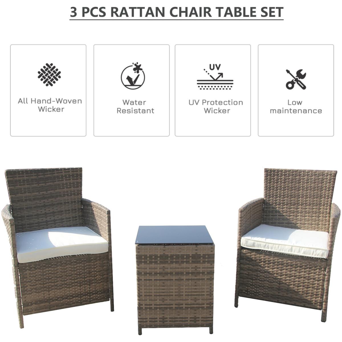 Furniture One 3pcs furniture set is perfect as a conversation set for any patio, deck, sun room, or garden, our Furniture One rattan coffee table and chairs will create a classic centrepiece in any setting. Made from PE wicker rattan, this set is UV resistant, water-resistant, and built to last. These lightweight chairs and tables are easily movable and simple to store as the seasons come and go.