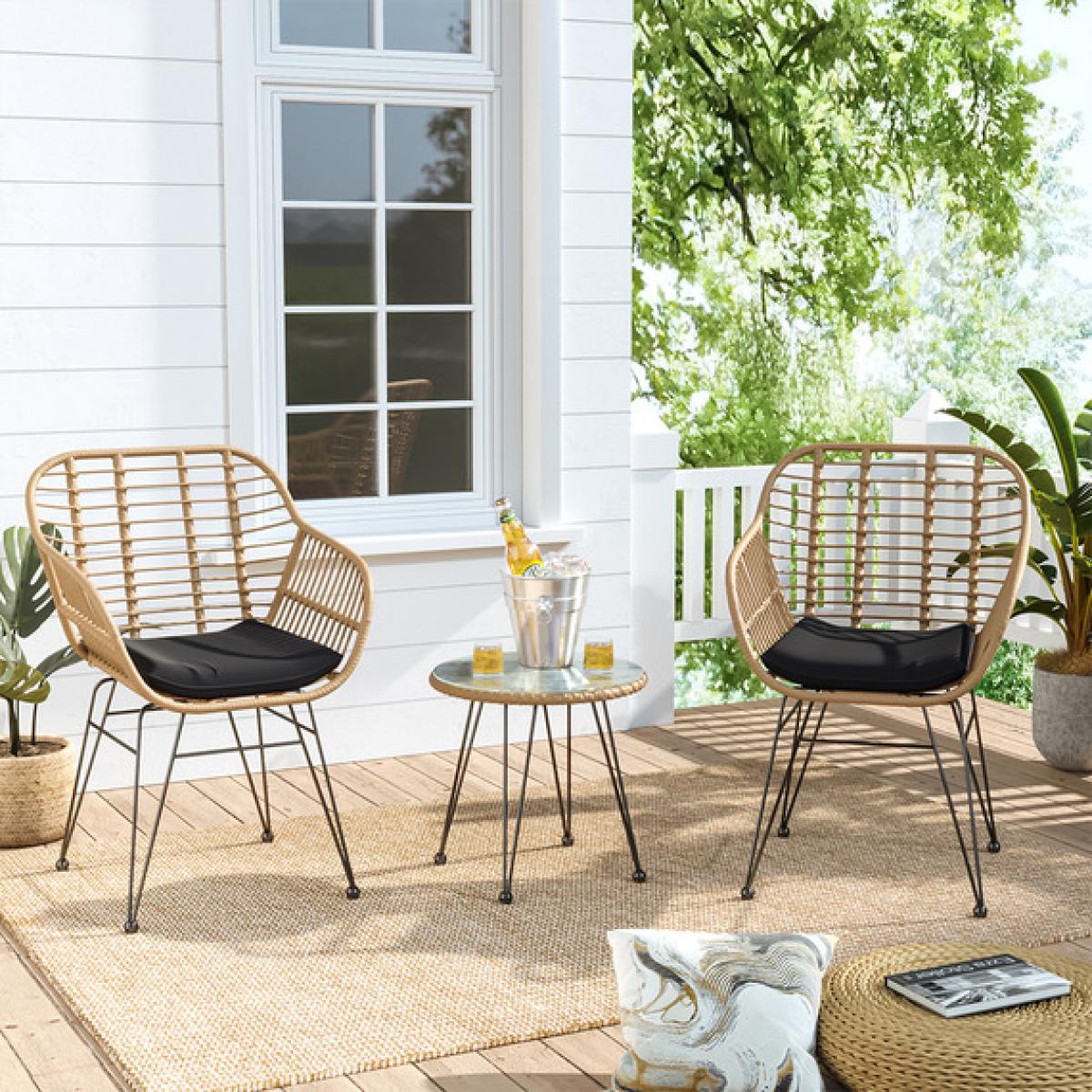 I love this set for its vibrant yellow hue which energises outdoor spaces and works beautifully in modern, coastal, or boho-themed gardens. The rattan design offers a relaxed yet stylish vibe, making it perfect for casual lounging and al fresco dining alike. When styling, consider pairing it with neutral or earthy tones to let the colour pop, or complement it with patterned cushions and throws for added comfort. Practical tips include using weather-resistant cushions to prolong comfort and durability, and pairing the set with a large parasol or shaded corner to create a cosy outdoor retreat. This set is versatile enough to brighten up patios, terraces, or garden nooks, making it a cheerful centrepiece for any outdoor area.
