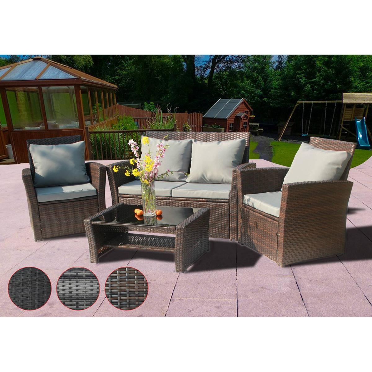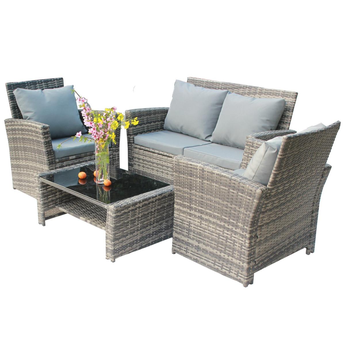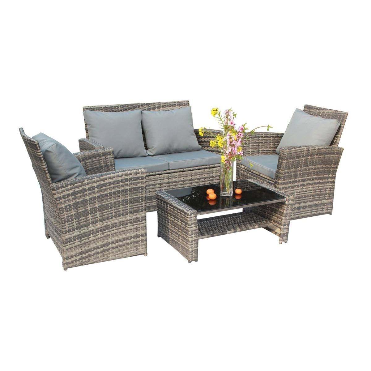 4 pieces Rattan Sofa Set complete with Chairs and Coffee Table, fashion to be used at patio, garden, conservatory to enjoy leisure times. Manual premium PE rattan weave with a wipe-clean surface, UV treated and fade resistant for a long year of use. Arrives Flat Packed. The instruction manual is provided with the purchase along with all the relevant screws and fittings.