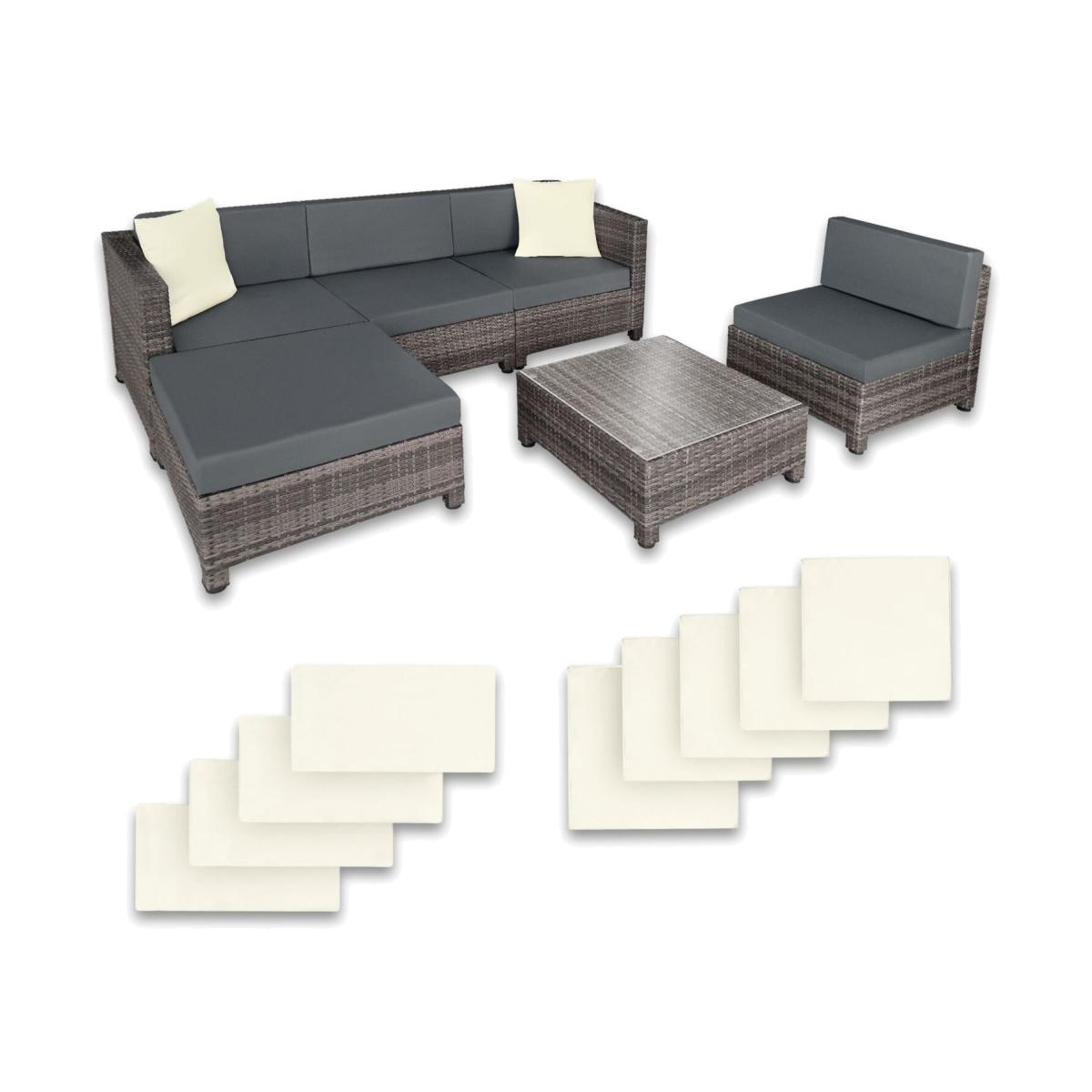 This rattan garden furniture seater set consisting of a table, sofa and armchair is made from aluminium and covered with poly rattan. This results in low weight, without compromising stability. The table surface made of glass looks extremely classy and is easy to clean. The very comfortable seat cushions made of polyester are perfectly colour-coordinated with the black rattan set and feature a zipper on the back allowing for easy cleaning. To protect the padding from moisture and dirt, the surface is impregnated. Through the various single elements, the set can be arranged according to your wishes. Order this beautiful lounge garden furniture set from Tectake and visibly enhance your outdoor home garden or patio.