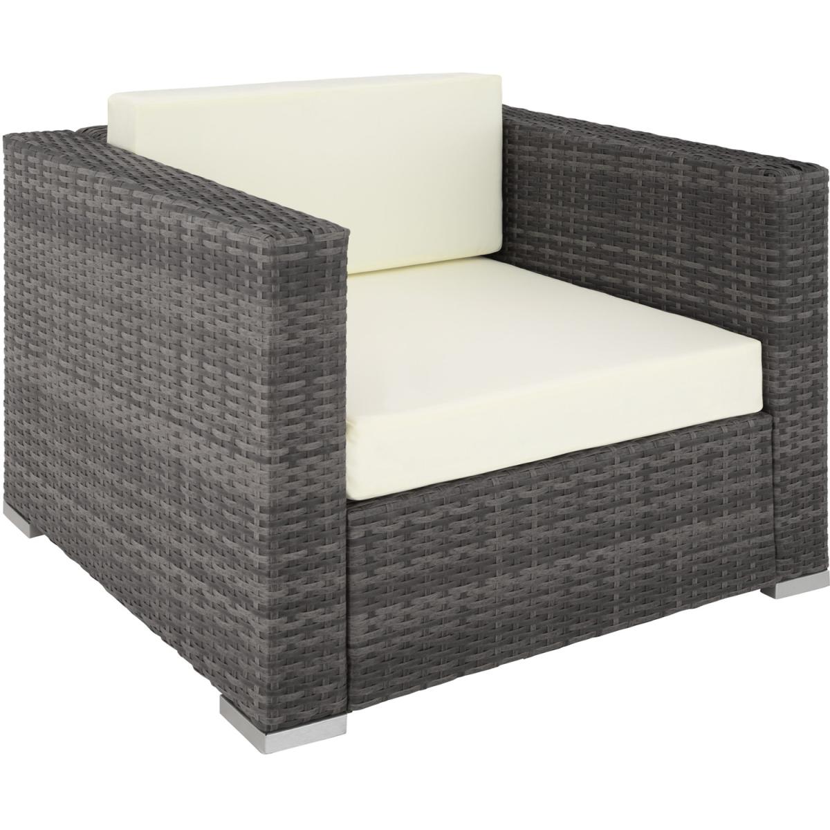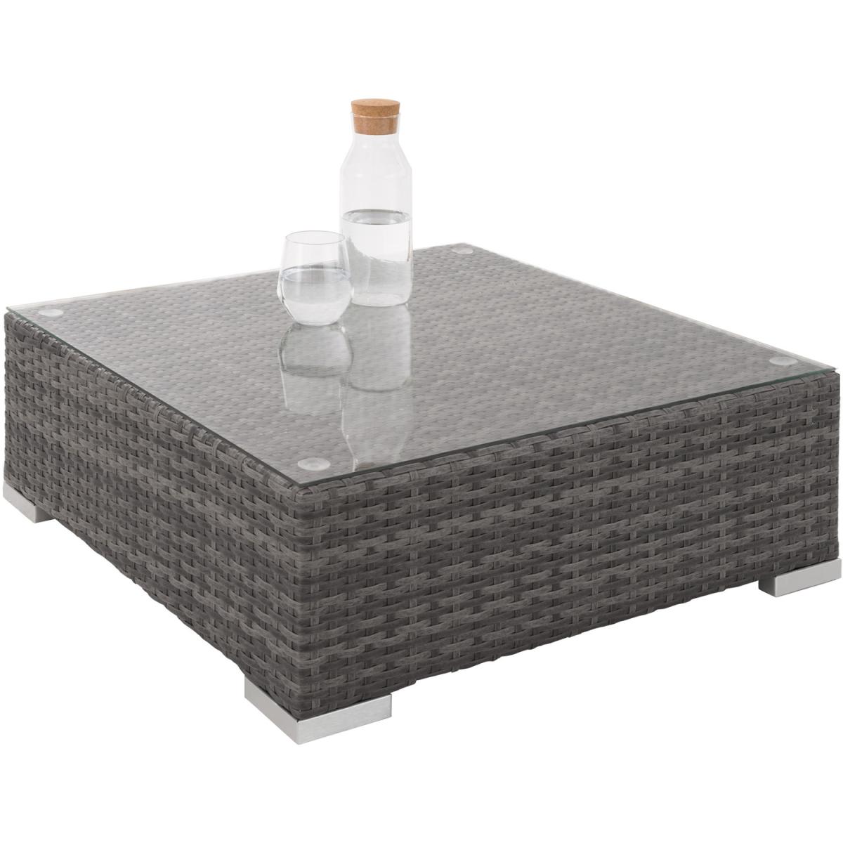 Whether outside or indoors, the tectake poly rattan garden furniture lounge set can be used in versatile ways and visually enhances your garden, patio, conservatory or living room. The elegant table and comfortable chairs promise relaxing hours. The rattan garden set not only impresses with its elegant appearance but also through its long life span. Due to the low weight, the furniture can be easily transported. The table top made of glass is very classy and easy to clean. The very comfortable, polyester seat cushions are perfectly colour coordinated with the rattan set and feature a zipper on the back allowing for easy cleaning. To protect the padding from water, the surface is impregnated. That way, drops of dirt and water simply roll off. Through the various single elements, the garden set can be arranged according to your wishes. Get this rattan garden furniture set from tectake and relax in your outdoor space.