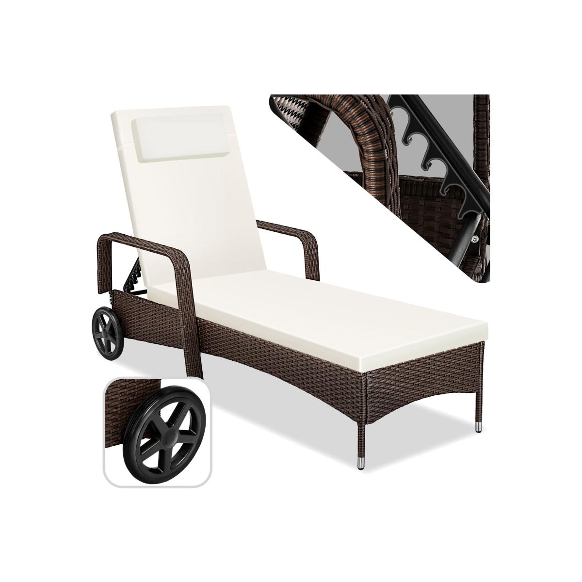 Relax and unwind in the garden or on the terrace with this sun lounger from tectake. The elegant lounging chair can be an absolute eye-catcher for your balcony, sauna or spa area. A sophisticated design with sleek shapes and an innovative combination of materials also make this sun lounger visually perfect. The sun lounger's backrest is adjustable to your needs and the two wheels make it easy to transport and reposition. The chair's stable metal frame and the easy-care poly-rattan are optimally suited for outdoor as well as indoor use in your home. A great extra on this furniture is the comfortable, removable cushioned seat and separate pillow accessories. Enjoy the summer in your garden with this sun lounger from tectake.