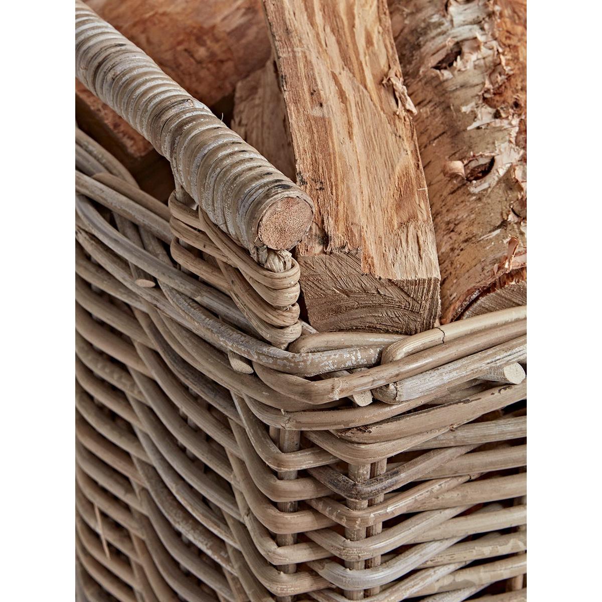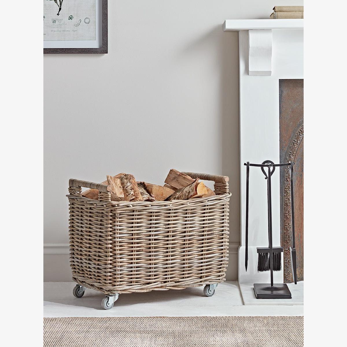 Take the heavy lifting out of keeping the home fires burning with this impressive log basket on wheels. This large basket is woven from sturdy wicker in lovely silver grey tones. There are two handles with which to pull or push the basket, which is set on four sturdy wheels for full manoeuvrability. A great addition to the fireside, that is practical as well as stylish.