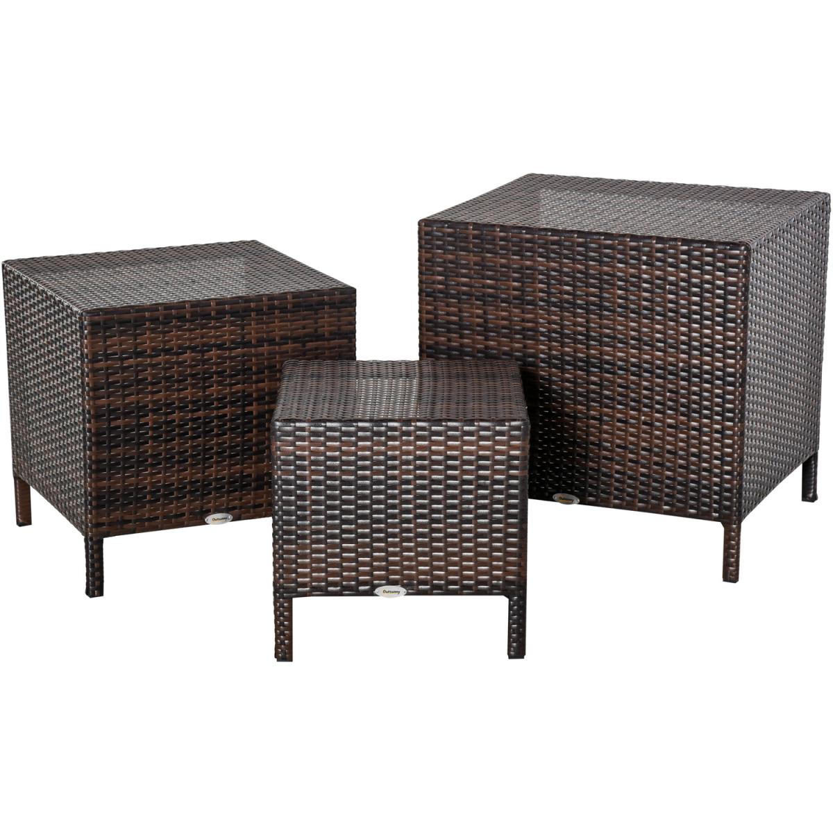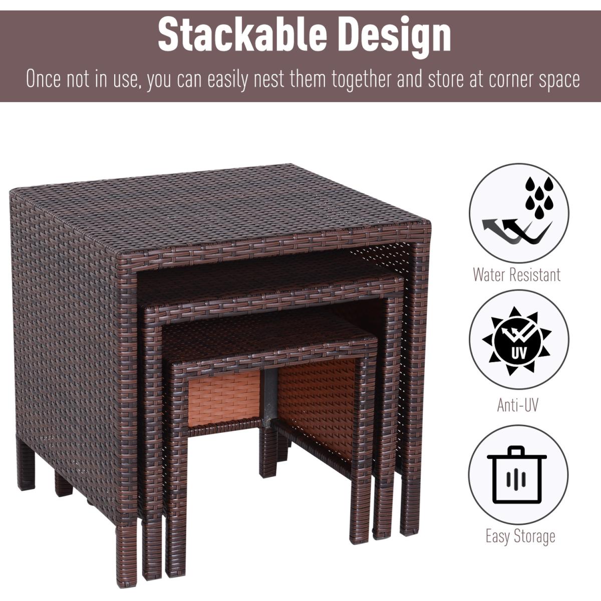 These nesting tables from Outsunny are perfect for when you need more surface space from time to time. Handwoven from PE wicker, these Rattan tables are made to withstand all weather conditions for year-long use, with a solid metal frame underneath to ensure continued stability and durability. The set includes three tables - one small, one medium and one large, allowing you to stack under each other as one unit when not in need, perfect for those with limited space. Functional, yet stylish, you'll love bringing these out when friends and family come over.