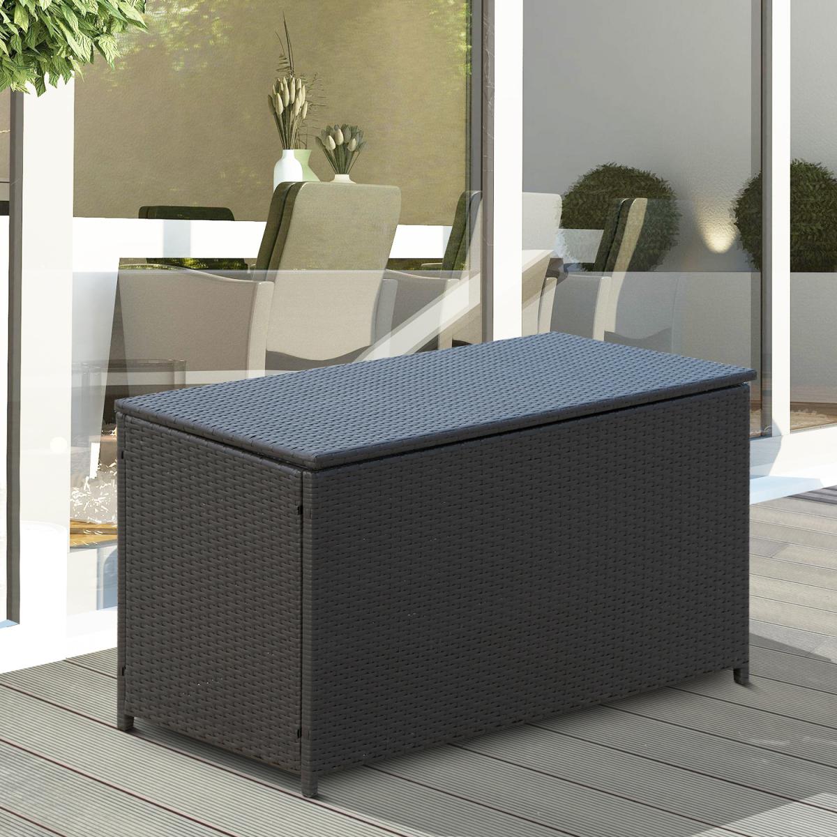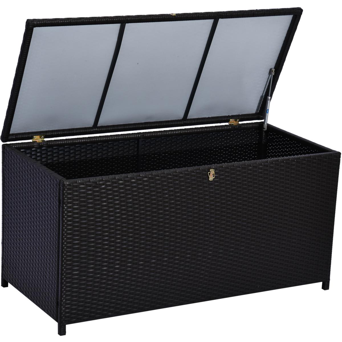 This Outsunny Rattan box is an ideal item to have in your garden or patio area. It is a great place to store your cushions for your rattan furniture or to store anything which you need access to quickly. Made with a metal frame and covers with PE rattan, to match your existing outdoor furniture. The lightweight materials make it an effortless job to move it around if required. This is a great solution for all your storage needs, with the ability to match any decoration.