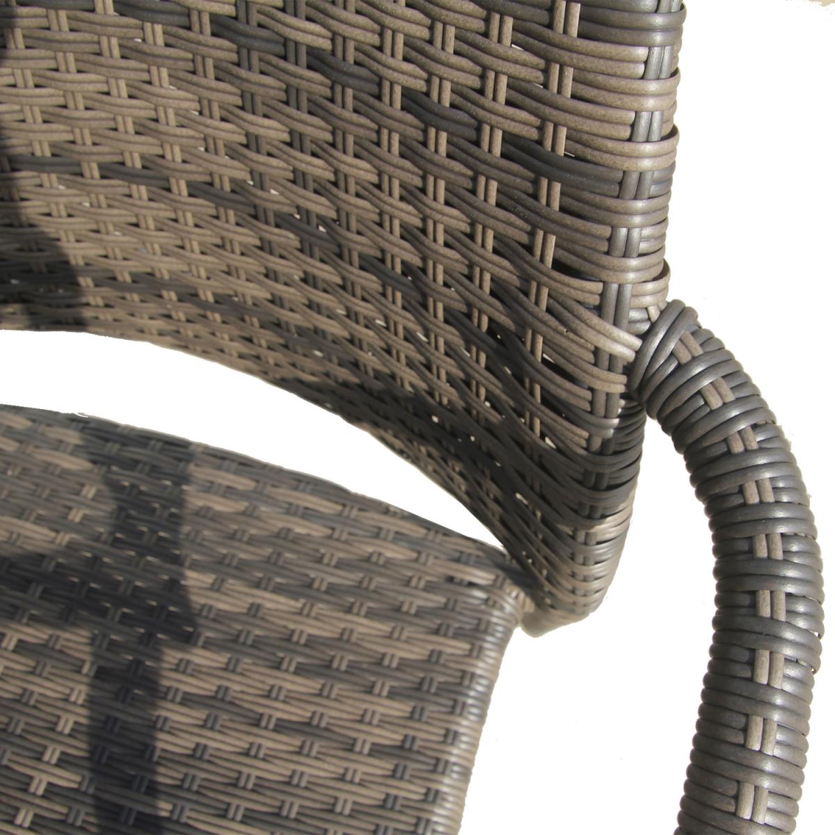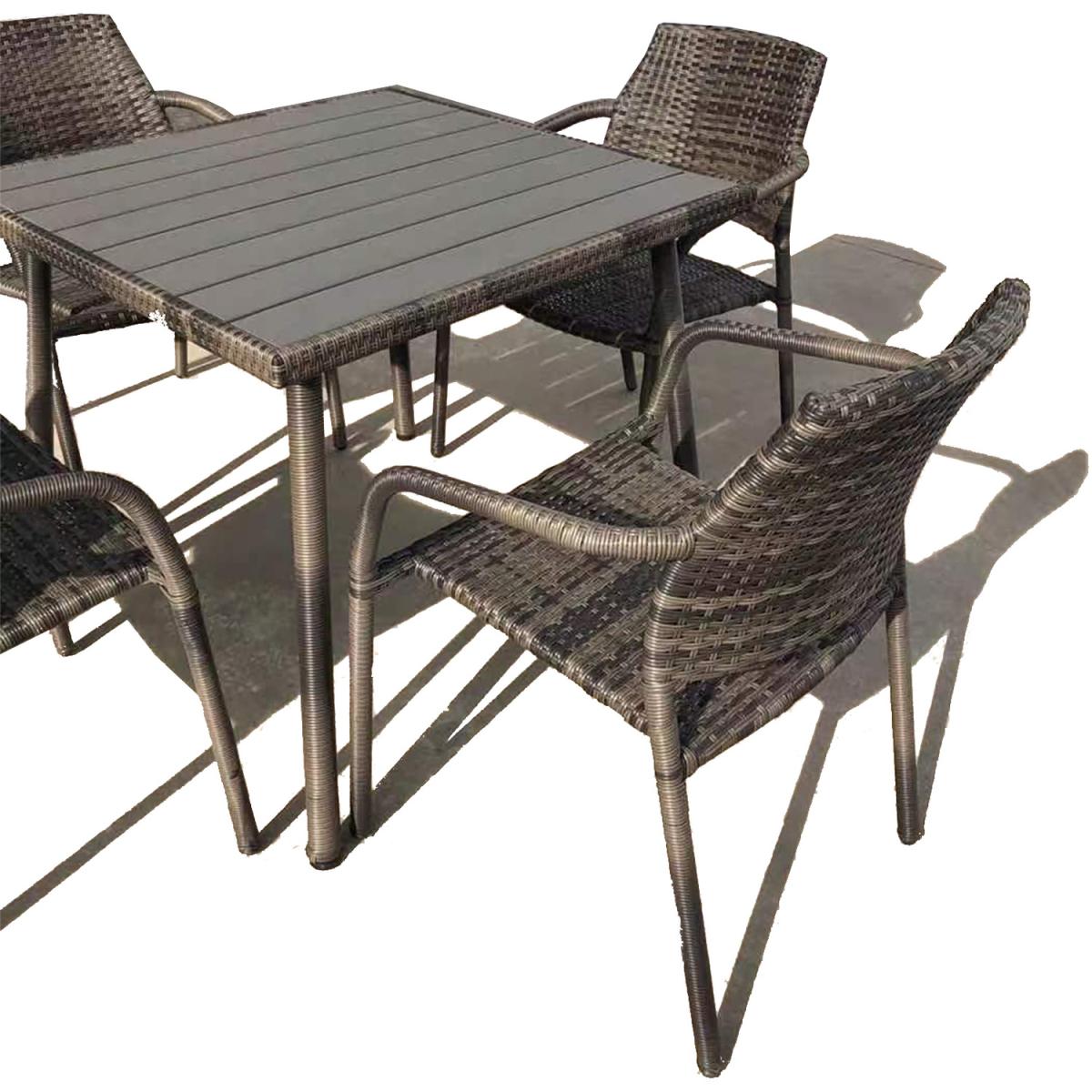 The new material of this tabletop makes it easier to clean and can avoid damage during a storm, which is much safer and more durable than the glass table-top. Frame galvanized for extra strength and resistance to rust and wrapped in PE rattan which makes it more sturdy, weatherproof, and UV-resistant. Made from high-quality, durable PE rattan weatherproof, and UV-resistant, The armchair can be stacked vertically, saving storage space. chair weight capacity is up to 160kg. Table weight capacity 80kg.