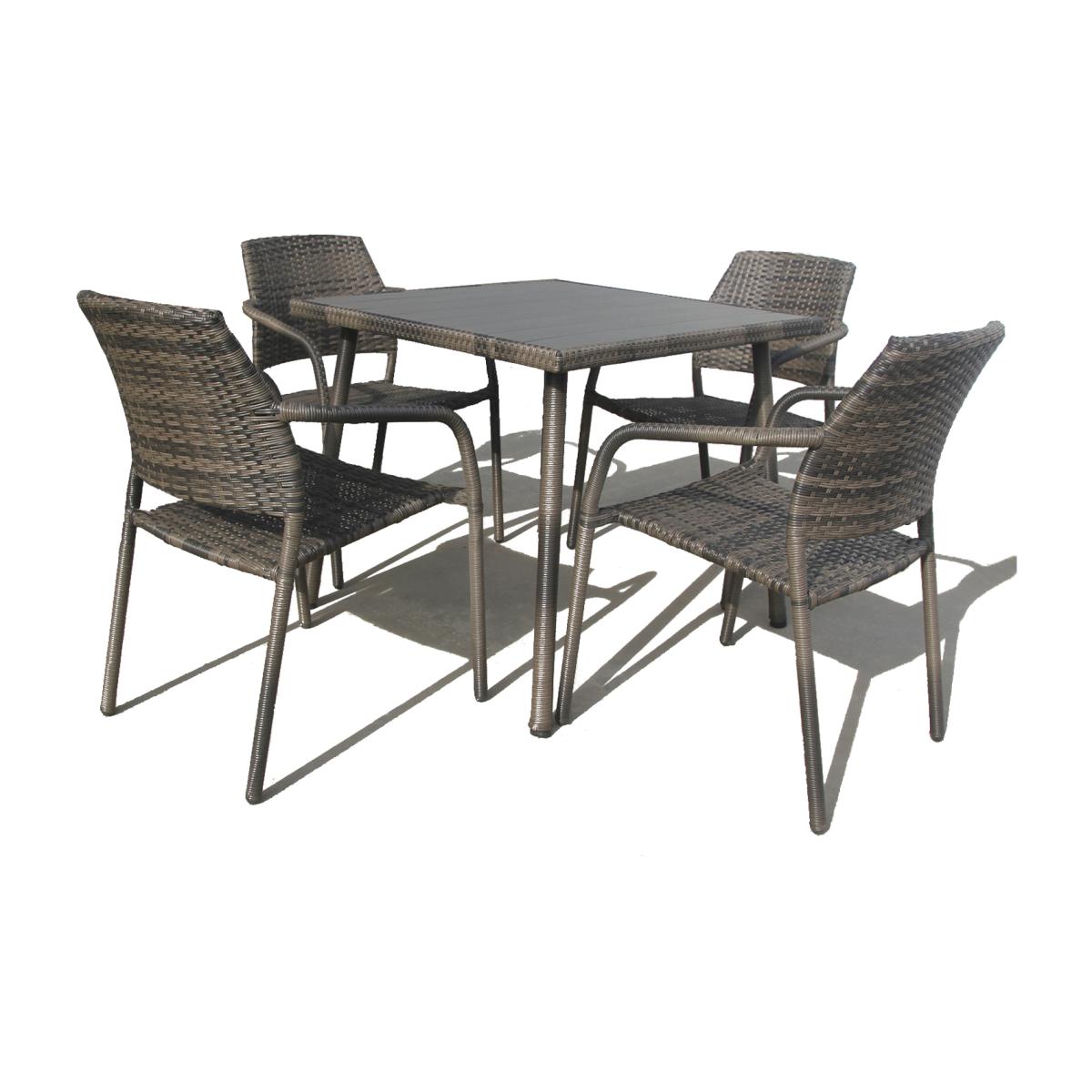 Rattan Patio Dining Stackable with Table Set - Brown / 4 / Small