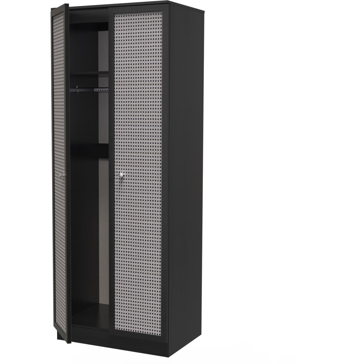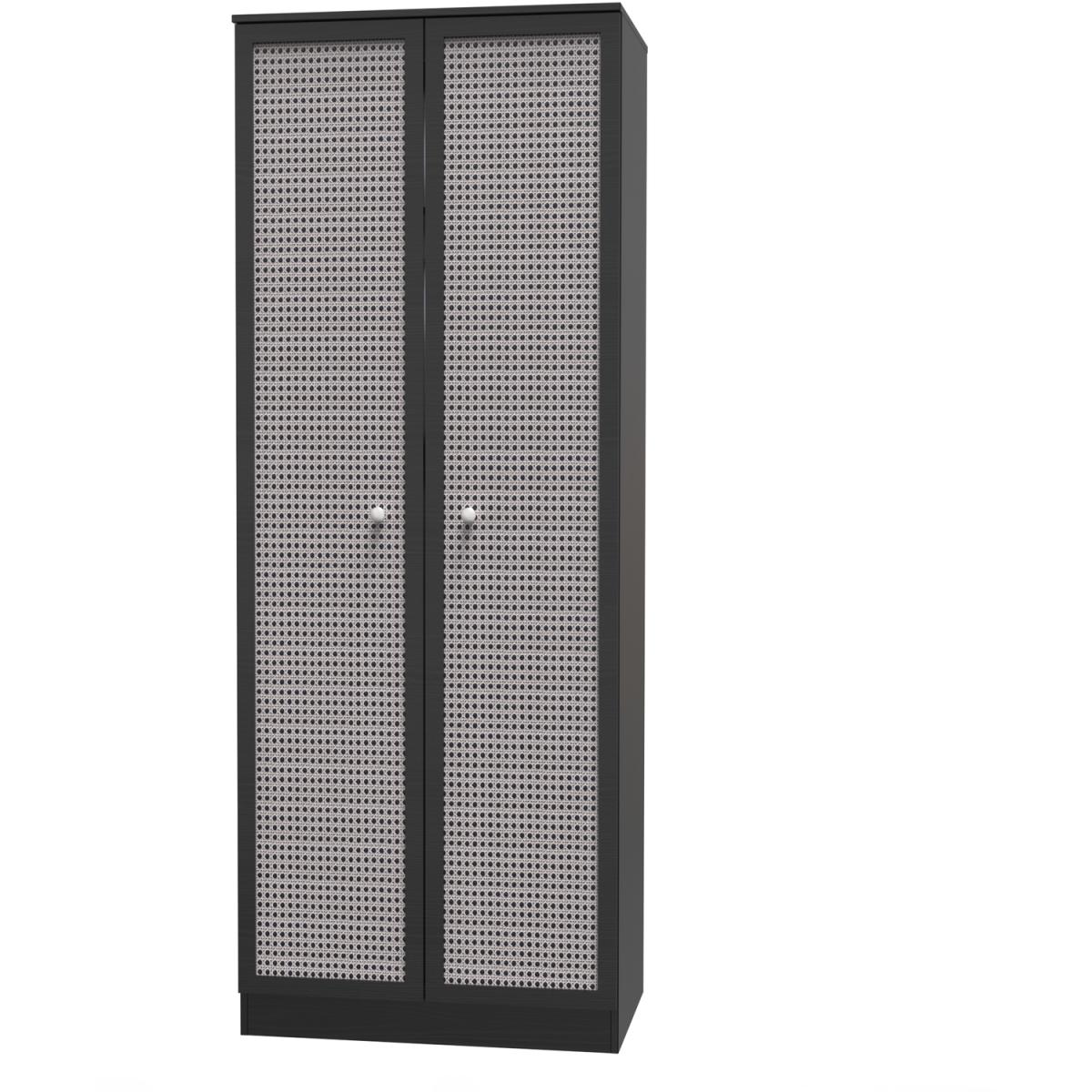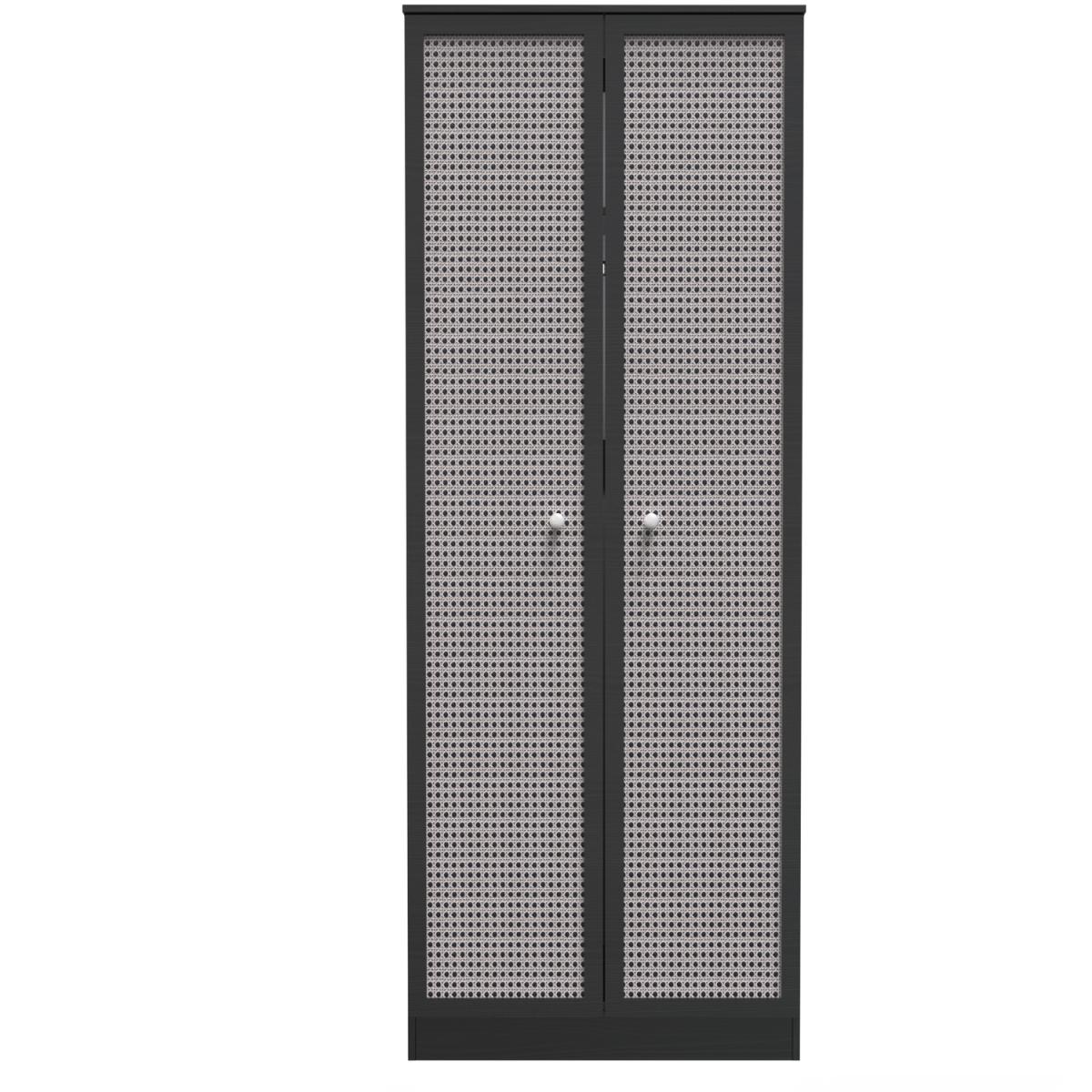 Rattan Ready Assembled 2ft6in Plain Wardrobe - Rattan & Smooth Black