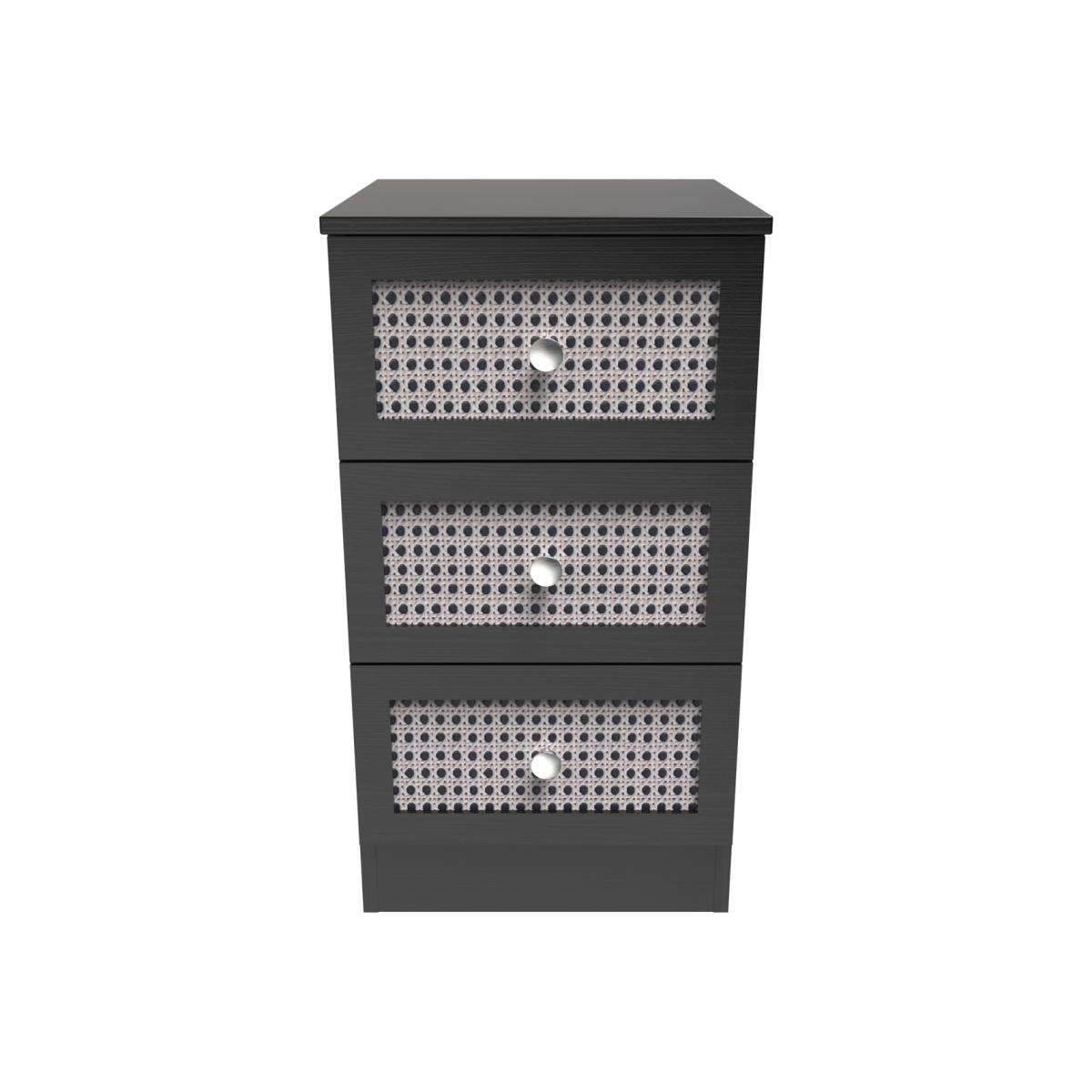 Rattan Ready Assembled 3 Drawer Bedside Cabinet - Rattan & Smooth Black