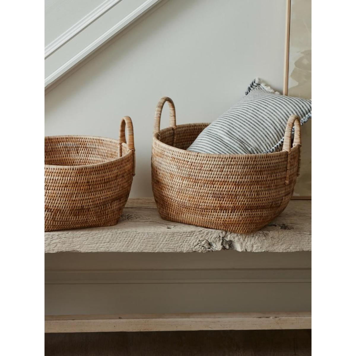 Available to purchase individually in large size or a slightly smaller set of 2, these rattan storage baskets are the perfect place to store your extra cushions and throws during the winter season. Handmade from high quality rattan and with an exceptional weave these baskets are timeless in design and sturdy enough to last a lifetime. A perfect way to elevate your storage. Finished in a natural matt glaze.