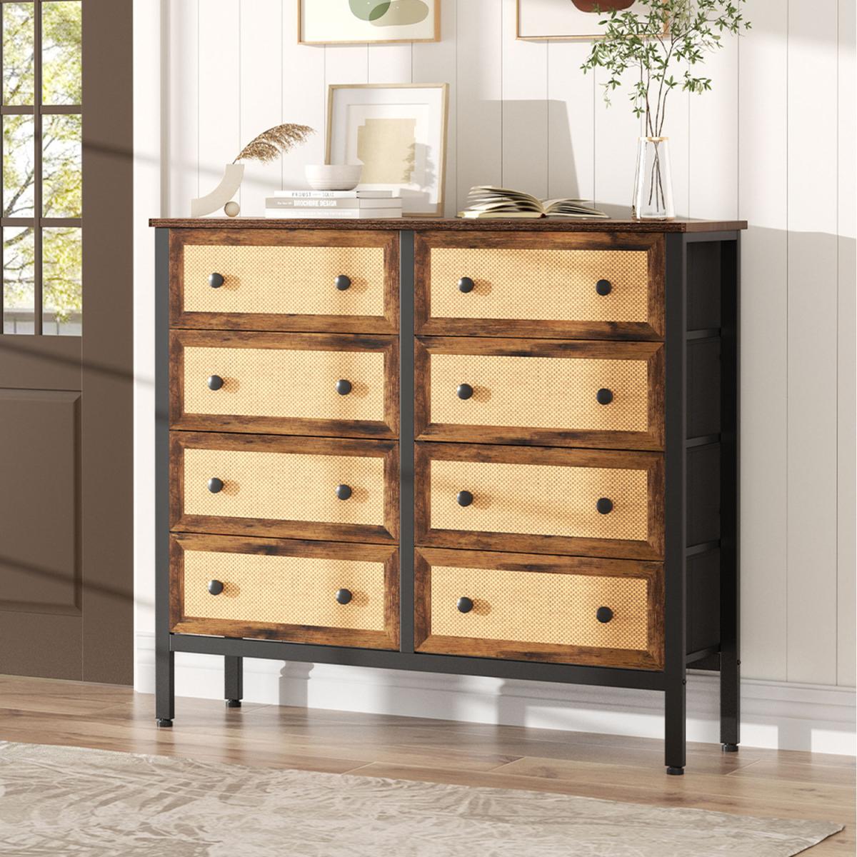 With its rustic rattan-front design, our Storage Cabinet effortlessly complements your wooden furniture collection. The dark brown wooden surface exudes a cozy warmth that you'll appreciate. Boasting six drawers with black wooden knobs and ample top space, it offers discreet storage for your essentials while also providing a spot to display your favorite items. Both simple and timeless, this cabinet is a stylish and practical addition to any room.