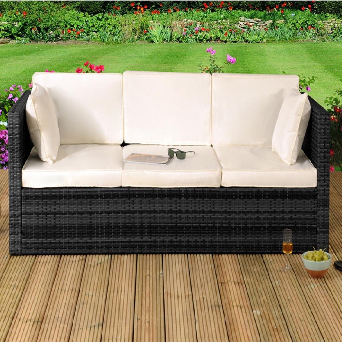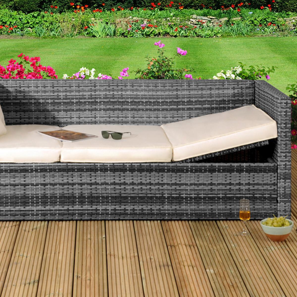 A stylish seating area for friends and family, and when you wish to lounge in the sun, simply raise the seating ends with the support struts to effortlessly convert the sofa into a sunbed. Ideal for the patio, garden or roof terrace for entertaining guests or enjoying your morning coffee in comfort. This sun lounger features luxuriously cream cushioned seating, designed to resist the elements with showerproof covers that are removable and machine washable. The seating sides raise to reveal ample storage space for a practical, space-saving solution, perfect for smaller gardens, patios and outdoor spaces. Made from high-quality poly-rattan material which is UV resistant to prevent colour fading and woven over a sturdy metal frame to provide durability over the years and requires no maintenance.