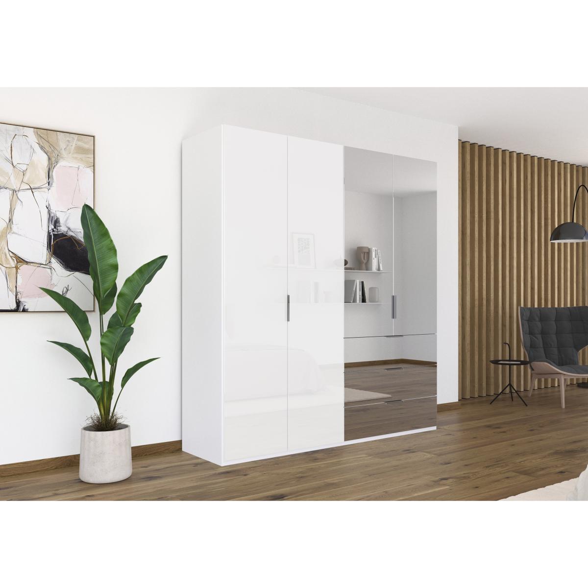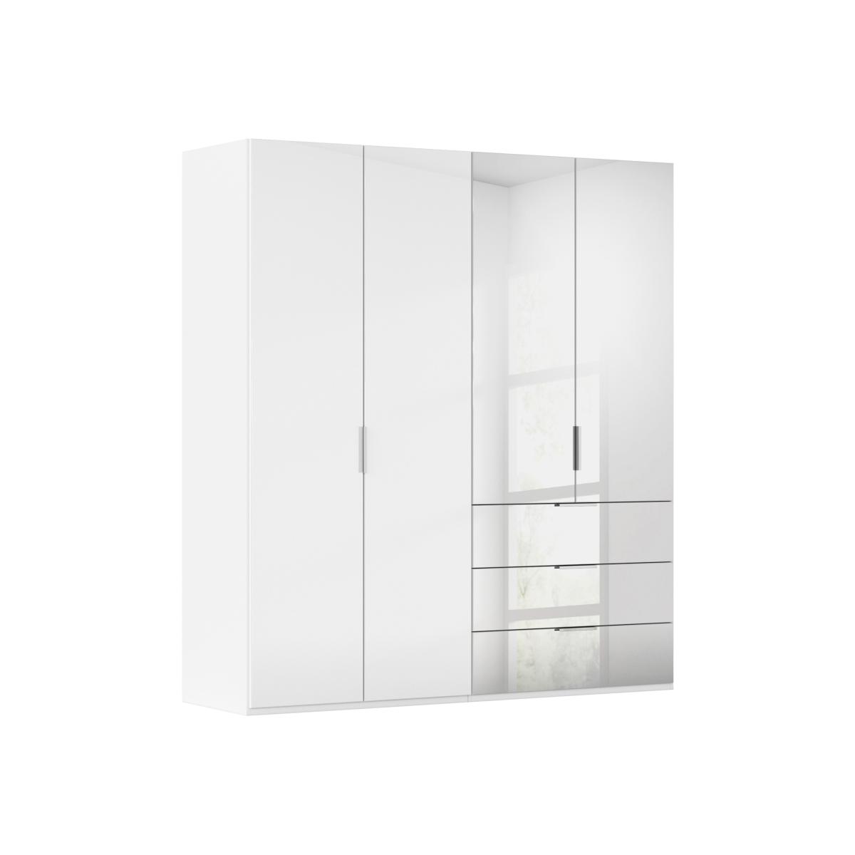 A wardrobe doesn’t have to be a functional necessity. Thanks to the Rauch Formes range of sleek wardrobes – exclusive to Furniture Village – it can also be a stylish centerpiece for any bedroom. Beautifully made in Germany, these contemporary hinged and sliding door wardrobes offer plenty of scope for you to bring your inner designer to the fore. Choose from four different frame colours and nine different door finishes including glass and mirrored. Hinged wardrobes have chrome-style handles and soft-close doors. This wardrobe has it all – space-saving bifold doors, versatile combi wardrobe storage and a gorgeous glass and high-gloss finish. By Rauch for Furniture Village. Why you'll love it Sleek contemporary style meets incredible storage. With effortless and space-saving bifold doors. High-gloss frame and 2 full-height glass doors in a choice of colours. Chrome-effect metal handles. Spacious and ergonomic storage. 3 drawers plus 2 shelves and 1 hanging rail in each internal section. Customise this wardrobe with a range of practical interior fittings. Made in Germany. By Rauch exclusively for Furniture Village. This 4-door bifold combi wardrobe is part of the Rauch Formes range. What you need to know Assembled and installed for you on delivery. Cost is included in the delivery charge. Hairline marks are a natural feature of high-gloss finishes. Dust with a lint-free cloth. Do not use silicone-based furniture polishes. Transform your bedroom with furniture from our extensive Rauch Formes range. WARNING! Furniture can tip over unexpectedly and cause injury. This item must be fixed to a wall using the anti-tip kit provided. Be sure to use the correct wall fixings suitable for the walls in your home. Furniture Village is not able to fix anti-tip devices for you. Seek professional advice if you are unsure.