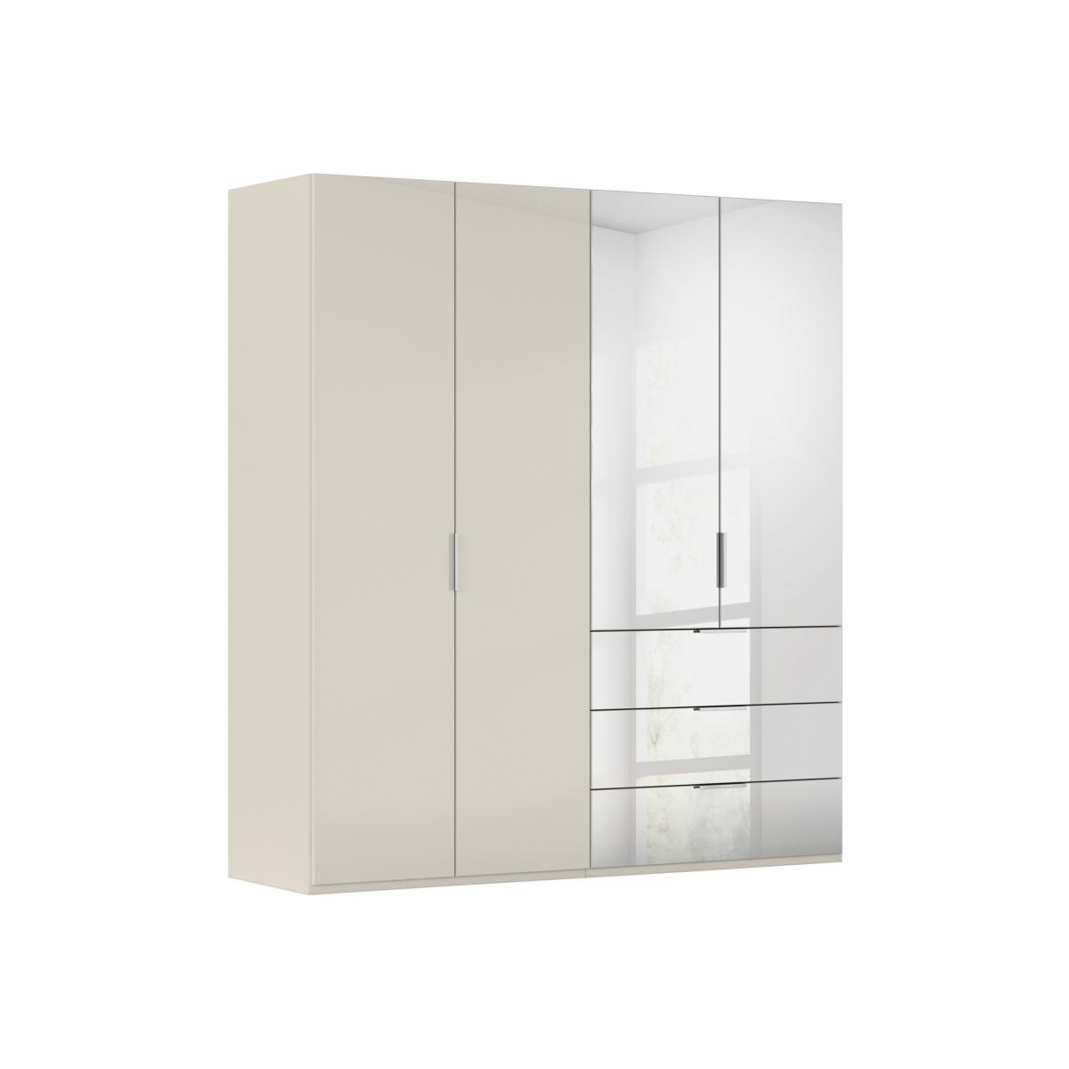 A wardrobe doesn’t have to be a functional necessity. Thanks to the Rauch Formes range of sleek wardrobes – exclusive to Furniture Village – it can also be a stylish centerpiece for any bedroom. Beautifully made in Germany, these contemporary hinged and sliding door wardrobes offer plenty of scope for you to bring your inner designer to the fore. Choose from four different frame colours and nine different door finishes including glass and mirrored. Hinged wardrobes have chrome-style handles and soft-close doors. This wardrobe has it all – space-saving bifold doors, versatile combi wardrobe storage and a gorgeous glass and high-gloss finish. By Rauch for Furniture Village. Why you'll love it Sleek contemporary style meets incredible storage. With effortless and space-saving bifold doors. High-gloss frame and 2 full-height glass doors in a choice of colours. Chrome-effect metal handles. Spacious and ergonomic storage. 3 drawers plus 2 shelves and 1 hanging rail in each internal section. Customise this wardrobe with a range of practical interior fittings. Made in Germany. By Rauch exclusively for Furniture Village. This 4-door bifold combi wardrobe is part of the Rauch Formes range. What you need to know Assembled and installed for you on delivery. Cost is included in the delivery charge. Hairline marks are a natural feature of high-gloss finishes. Dust with a lint-free cloth. Do not use silicone-based furniture polishes. Transform your bedroom with furniture from our extensive Rauch Formes range. WARNING! Furniture can tip over unexpectedly and cause injury. This item must be fixed to a wall using the anti-tip kit provided. Be sure to use the correct wall fixings suitable for the walls in your home. Furniture Village is not able to fix anti-tip devices for you. Seek professional advice if you are unsure.