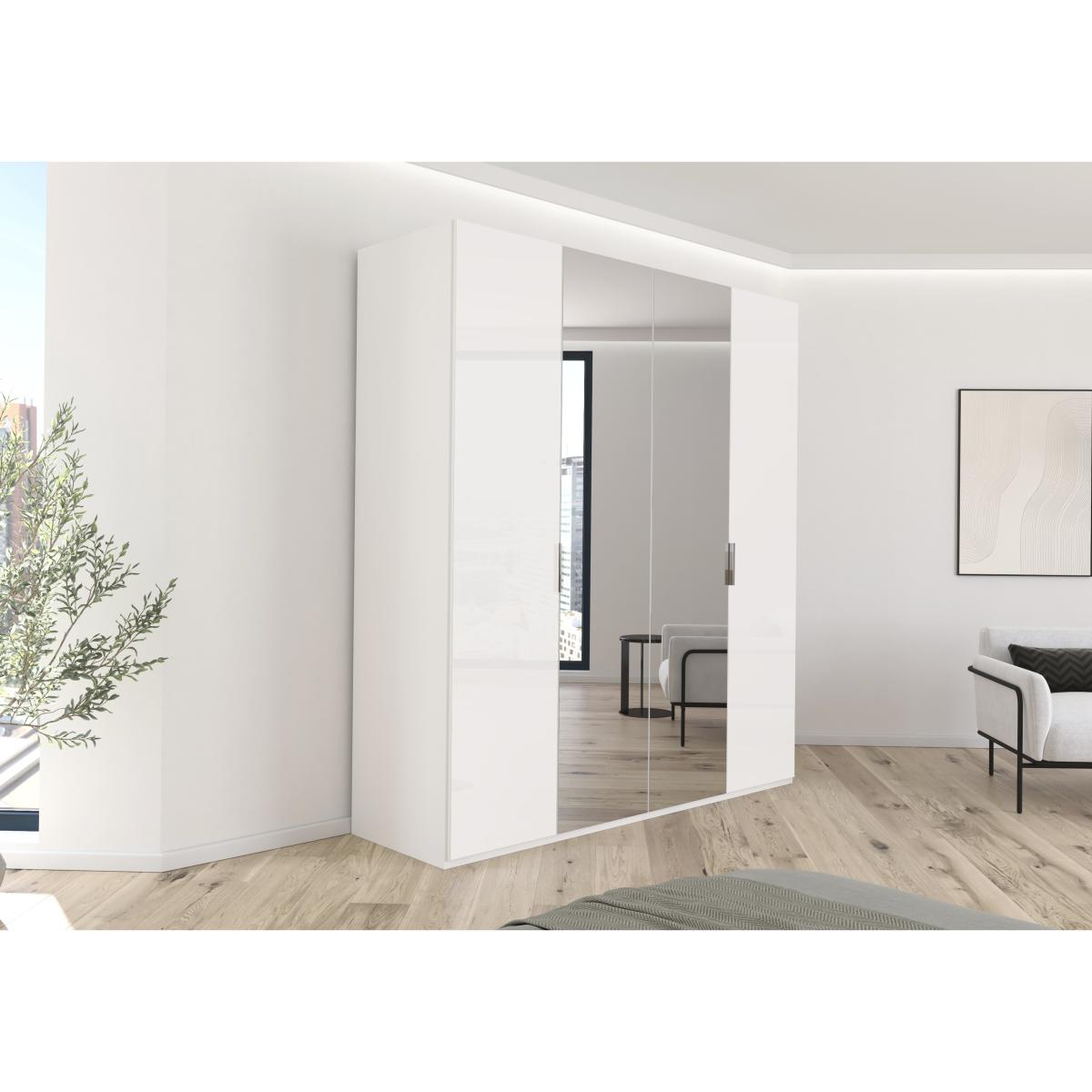 A wardrobe doesn’t have to be a functional necessity. Thanks to the Rauch Formes range of sleek wardrobes – exclusive to Furniture Village – it can also be a stylish centerpiece for any bedroom. Beautifully made in Germany, these contemporary hinged and sliding door wardrobes offer plenty of scope for you to bring your inner designer to the fore. Choose from four different frame colours and nine different door finishes including glass and mirrored. Hinged wardrobes have chrome-style handles and soft-close doors. We love the glass and mirror door finish of this roomy four-door bifold wardrobe. Plus, bifold doors are an ergonomic choice for a narrow bedroom. By Rauch. Why you'll love it Sleek contemporary style meets incredible storage. With effortless and space-saving bifold doors. High-gloss frame in a choice of colours. With 2 mirrored doors and 2 glass doors. Chrome-effect metal handles. Spacious and ergonomic storage. 2 shelves and 1 hanging rail in each internal section. Customise this wardrobe with a range of practical interior fittings. Made in Germany. By Rauch exclusively for Furniture Village. This 4-door bifold wardrobe is part of the Rauch Formes range. What you need to know Assembled and installed in your room of choice on delivery. Cost is included in the delivery charge. Hairline marks are a natural feature of high-gloss finishes. Dust with a lint-free cloth. Do not use silicone-based furniture polishes. Transform your bedroom with furniture from our extensive Rauch Formes range. WARNING! Furniture can tip over unexpectedly and cause injury. This item must be fixed to a wall using the anti-tip kit provided. Be sure to use the correct wall fixings suitable for the walls in your home. Furniture Village is not able to fix anti-tip devices for you. Seek professional advice if you are unsure.