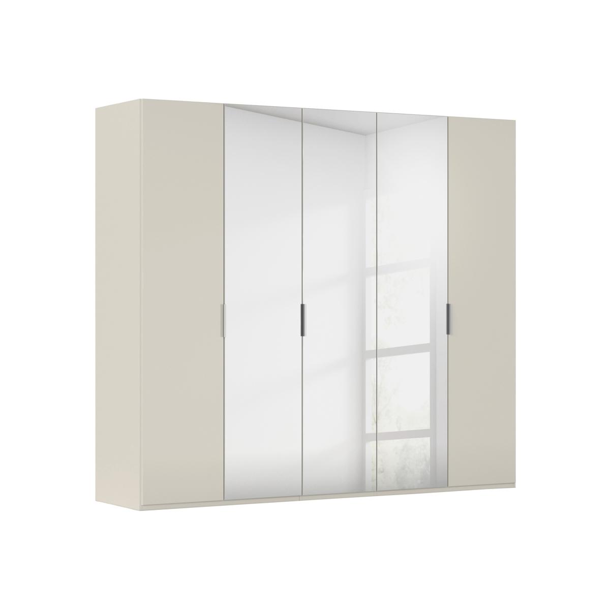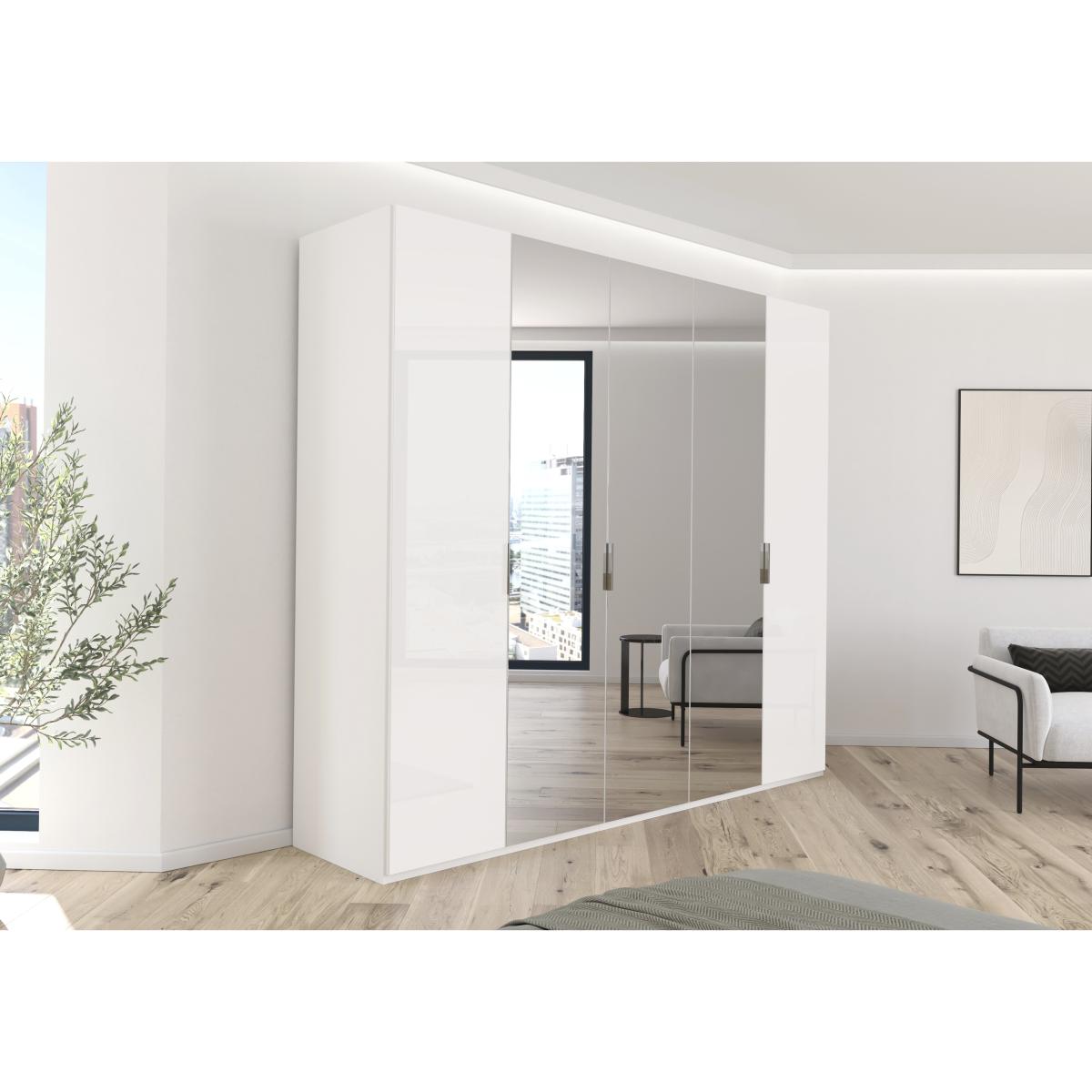 A wardrobe doesn’t have to be a functional necessity. Thanks to the Rauch Formes range of sleek wardrobes – exclusive to Furniture Village – it can also be a stylish centerpiece for any bedroom. Beautifully made in Germany, these contemporary hinged and sliding door wardrobes offer plenty of scope for you to bring your inner designer to the fore. Choose from four different frame colours and nine different door finishes including glass and mirrored. Hinged wardrobes have chrome-style handles and soft-close doors. With its glossy finish in a choice of colours, two glass doors, three mirrored doors and well-designed internal storage, this Rauch five-door bifold wardrobe is perfect inside and out. Why you'll love it Sleek contemporary style meets incredible storage. With effortless and space-saving bifold doors. High-gloss frame in a choice of colours. With 3 mirrored doors and 2 glass doors. Chrome-effect metal handles. Spacious and ergonomic storage. 3 drawers plus 2 shelves and 1 hanging rail in each internal section. Customise this wardrobe with a range of practical interior fittings. Made in Germany. By Rauch exclusively for Furniture Village. This 5-door bifold wardrobe is part of the Rauch Formes range. What you need to know Assembled and installed for you on delivery. Cost is included in the delivery charge. Hairline marks are a natural feature of high-gloss finishes. Dust with a lint-free cloth. Do not use silicone-based furniture polishes. Transform your bedroom with furniture from our extensive Rauch Formes range. WARNING! Furniture can tip over unexpectedly and cause injury. This item must be fixed to a wall using the anti-tip kit provided. Be sure to use the correct wall fixings suitable for the walls in your home. Furniture Village is not able to fix anti-tip devices for you. Seek professional advice if you are unsure.