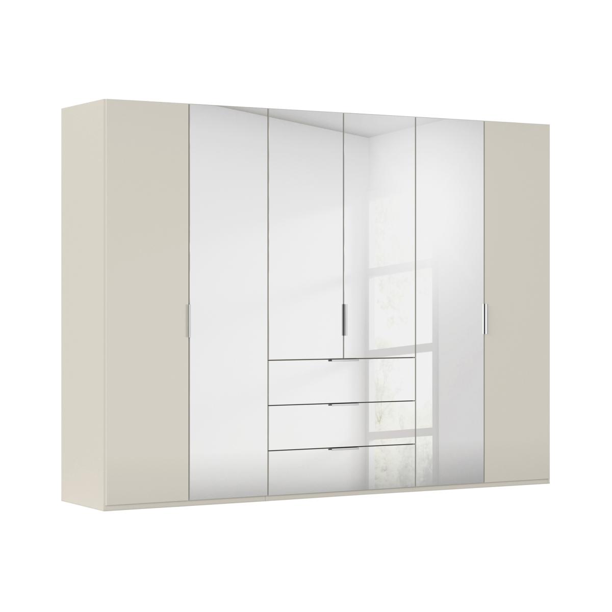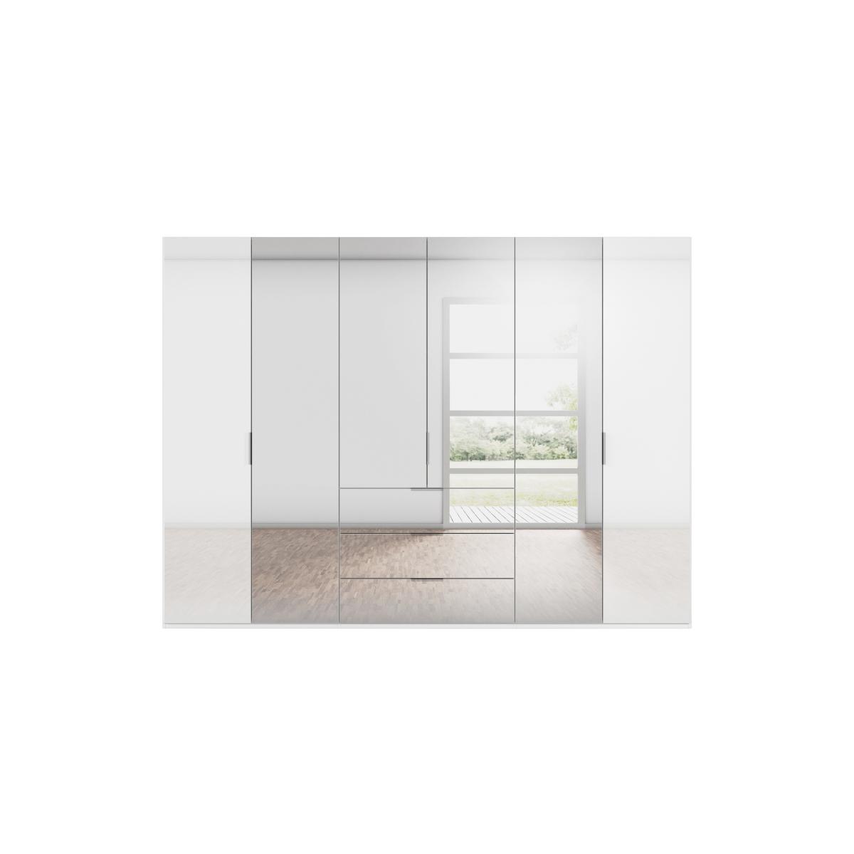 A wardrobe doesn’t have to be a functional necessity. Thanks to the Rauch Formes range of sleek wardrobes – exclusive to Furniture Village – it can also be a stylish centerpiece for any bedroom. Beautifully made in Germany, these contemporary hinged and sliding door wardrobes offer plenty of scope for you to bring your inner designer to the fore. Choose from four different frame colours and nine different door finishes including glass and mirrored. Hinged wardrobes have chrome-style handles and soft-close doors. Enjoy very spacious storage, practical bifold doors, four mirror doors and a striking modern high-gloss and glass finish in a choice of colours with this six-door Rauch combi wardrobe. Why you'll love it Sleek contemporary style meets incredible storage. With effortless and space-saving bifold doors. High-gloss frame and 2 glass doors in a choice of colours. With 4 mirrored doors. Chrome-effect metal handles. Spacious and ergonomic storage. 3 drawers plus 2 shelves and 1 hanging rail in each internal section. Customise this wardrobe with a range of practical interior fittings. Made in Germany. By Rauch exclusively for Furniture Village. This 6-door bifold combi wardrobe is part of the Rauch Formes range. What you need to know Assembled and installed for you on delivery. Cost is included in the delivery charge. Hairline marks are a natural feature of high-gloss finishes. Dust with a lint-free cloth. Do not use silicone-based furniture polishes. Transform your bedroom with furniture from our extensive Rauch Formes range. WARNING! Furniture can tip over unexpectedly and cause injury. This item must be fixed to a wall using the anti-tip kit provided. Be sure to use the correct wall fixings suitable for the walls in your home. Furniture Village is not able to fix anti-tip devices for you. Seek professional advice if you are unsure.