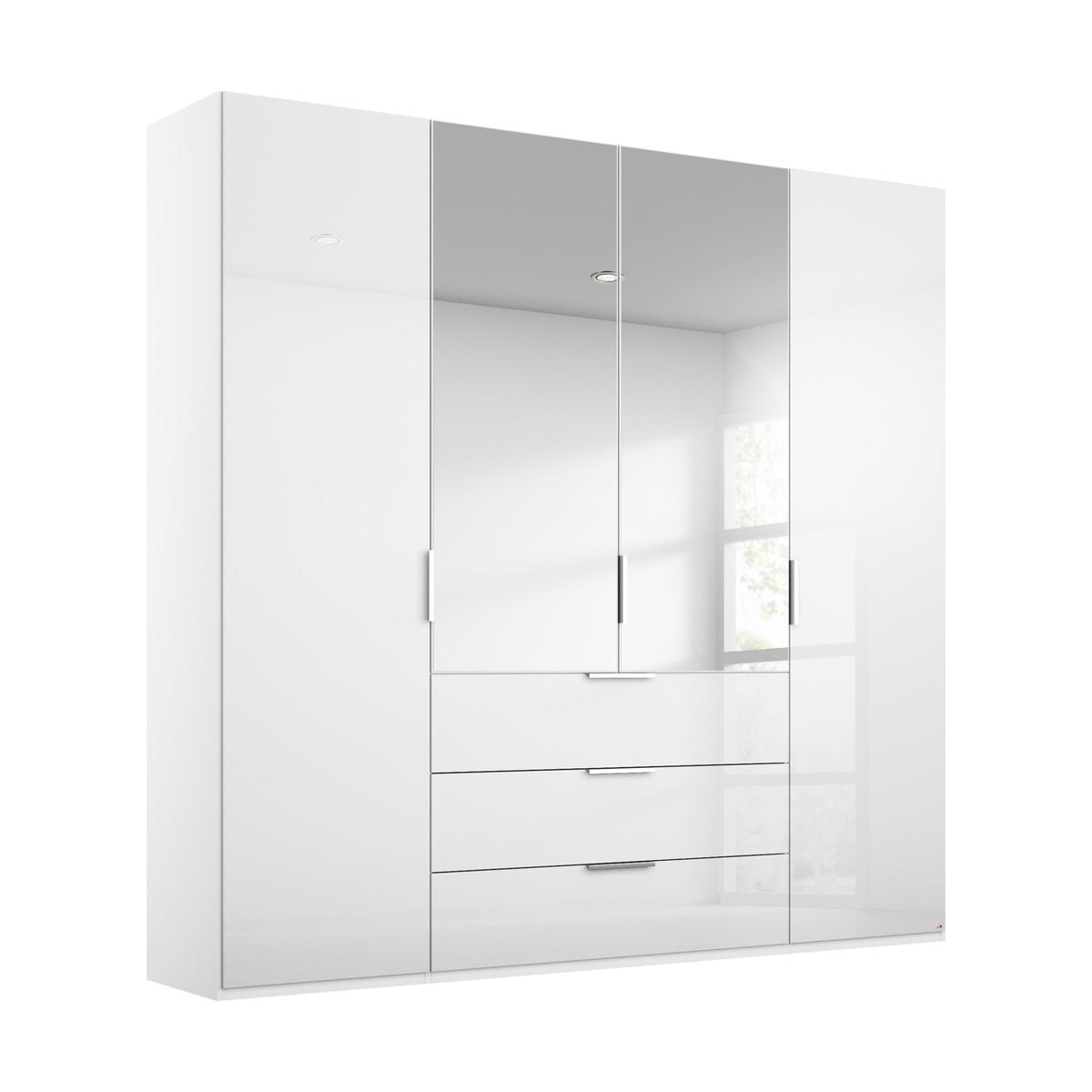 A wardrobe doesn’t have to be a functional necessity. Thanks to the Rauch Formes range of sleek wardrobes – exclusive to Furniture Village – it can also be a stylish centerpiece for any bedroom. Beautifully made in Germany, these contemporary hinged and sliding door wardrobes offer plenty of scope for you to bring your inner designer to the fore. Choose from four different frame colours and nine different door finishes including glass and mirrored. Hinged wardrobes have chrome-style handles and soft-close doors. Contemporary wardrobe style with stunning glass doors. Semi-fitted style, installed for you on delivery. Exclusively available at Furniture Village. The sleek Formes 4 door hinged combination wardrobe with 2 glass doors and 2 mirrored doors brings a touch of classic style to your bedroom. This beautiful wardrobe features two full-length doors either side of a compact wardrobe above a set of three drawers. The two taller outer doors come in a choice of three on trend colours. The wardrobe outer frame is available in five finishes that include wood effect and simple neutrals. Inside each of the three compartments you’ll find a useful arrangement of two shelves and a hanging rail. Door and drawers are soft close, and are finished with linear chrome-effect handles. Additional wardrobe interior fittings, including shelves, hanging rails and drawers, are available. WARNING!. Furniture can tip over unexpectedly and cause injury. This item shall be fixed to a wall using the anti-tip kit provided with the furniture. Be sure to use the correct wall fixings suitable for the walls in your home. The Formes 4 door hinged combination wardrobe with 2 glass doors and 2 mirrored doors is part of the Formes bedroom furniture collection. Made in Germany by sustainable furniture crafters Rauch, and only at Furniture Village. In order to allow space to build at least 4cm is required on one side of the wardrobe and 8cm height must be available above the wardrobe.