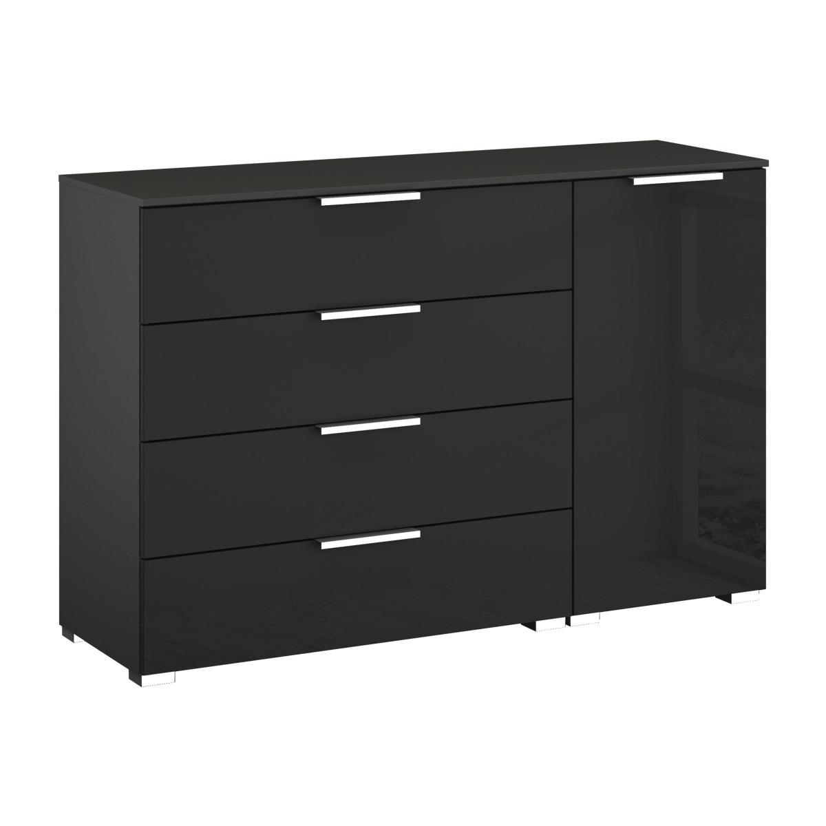 A wardrobe doesn’t have to be a functional necessity. Thanks to the Rauch Formes range of sleek wardrobes – exclusive to Furniture Village – it can also be a stylish centerpiece for any bedroom. Beautifully made in Germany, these contemporary hinged and sliding door wardrobes offer plenty of scope for you to bring your inner designer to the fore. Choose from four different frame colours and nine different door finishes including glass and mirrored. Hinged wardrobes have chrome-style handles and soft-close doors. Contemporary bedroom style with glass-fronted drawers. Made in Germany by Rauch. Exclusively available at Furniture Village. Sleek and contemporary, the Rauch Formes glass 4 drawer 1 door chest combines a sleek finish with fabulous storage. With both cupboard and drawer space, this chest is ultra-functional as well as ultra-stylish. The single door cupboard has a shelf so it’s ideal for shoe boxes, and the four drawers are exceptionally spacious, perfect for bulky winter sweaters as well as t-shirts and accessories. Choose from three looks for the glass fronted drawers and doors, and five frame finish choices including wood effects and monochromatic neutral. Linear chrome-effect handles on the soft-closing drawers and doors complete the contemporary look. The Rauch Formes glass 4 drawer 1 door chest is part of the extensive Rauch Formes bedroom furniture collection, and is designed and crafted in Germany by Rauch. Famous for its sustainable approach to furniture making, Rauch consistently produces beautiful and thoughtfully-configured pieces. Shop the entire collection and choose from a wide range of wardrobes and chests of drawers. Only at Furniture Village. WARNING!. Furniture can tip over unexpectedly and cause injury. This item shall be fixed to a wall using the anti-tip kit provided with the furniture. Be sure to use the correct wall fixings suitable for the walls in your home.