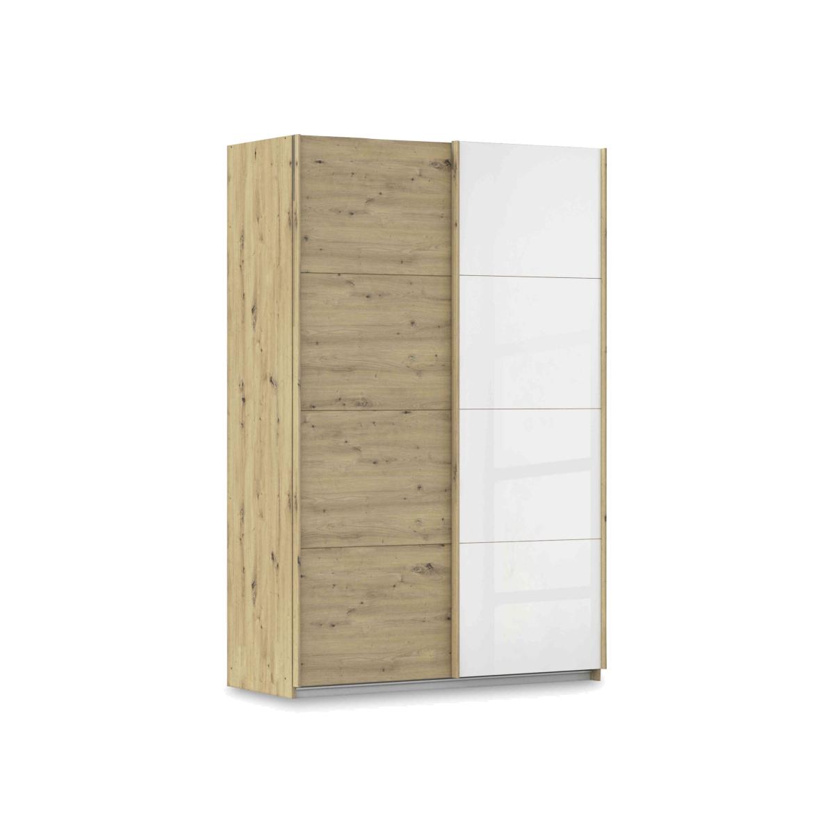 With so many sizes and styles of wardrobe plus chests of drawers, the Rauch Freja collection makes it so easy to create an on-trend and high-end bedroom look. Sliding door and hinged door wardrobes are offered in a choice of door finishes that include glass and decor as well as mirrored and an artisanal oak effect that matches the wardrobes’ frames. And with everything from two-door to five-door wardrobes available, there’s a sleek storage solution for any size of bedroom. Complete the look with a pair of bedside cabinets and a chest of drawers. And because it's made in Germany by Rauch, you’ll know that the Freja range offers exceptional standards of quality as well as unique style. The combination of rustic oak-effect finish and glass doors give this wardrobe elevated style. And you’ll love its roomy storage space and neat footprint. Why you'll love it Top-quality bedroom furniture from Rauch. On-trend style with an ultra-sleek finish. In a choice of sophisticated colours for the glass door. Frame and second door have an artisanal oak-effect finish. Sliding doors are soft closing. Superbly designed wardrobe storage with 1 shelf and 1 hanging rail in each section. Customise this wardrobe by adding space-saving and practical interior fittings. This 136 cm 2-door sliding wardrobe is part of the Rauch Freja range. What you need to know Assembled in your home free of charge. This sliding door wardrobe is available in a choice of widths to fit any bedroom. The Rauch Freja range includes sliding and hinged door wardrobes, and chests of drawers. WARNING!
