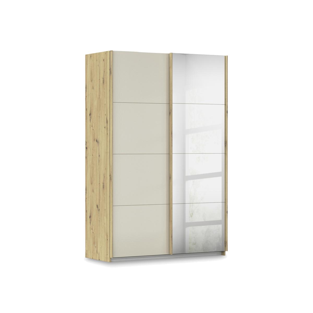 With so many sizes and styles of wardrobe plus chests of drawers, the Rauch Freja collection makes it so easy to create an on-trend and high-end bedroom look. Sliding door and hinged door wardrobes are offered in a choice of door finishes that include glass and decor as well as mirrored and an artisanal oak effect that matches the wardrobes’ frames. And with everything from two-door to five-door wardrobes available, there’s a sleek storage solution for any size of bedroom. Complete the look with a pair of bedside cabinets and a chest of drawers. And because it's made in Germany by Rauch, you’ll know that the Freja range offers exceptional standards of quality as well as unique style. Crafted by Rauch in Germany, this glass-door slider wardrobe has a fully mirrored door – a really practical feature, especially in a more compact bedroom. Why you'll love it Top-quality bedroom furniture from Rauch. On-trend style with an ultra-sleek finish. Practical as well striking with 1 mirrored door and 1 glass door. Choice of sophisticated colours for the glass door. Frame has an artisanal oak-effect finish. Sliding doors are soft closing. Superbly designed wardrobe storage with 1 shelf and 1 hanging rail in each section. Customise this wardrobe by adding space-saving and practical interior fittings. This 136 cm 2-door sliding wardrobe is part of the Rauch Freja range. What you need to know Assembled in your home free of charge. This sliding door wardrobe is available in a choice of widths to fit any bedroom. The Rauch Freja range includes sliding and hinged door wardrobes, and chests of drawers. WARNING!