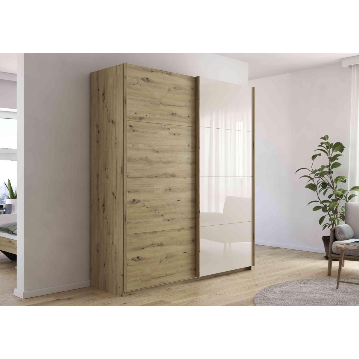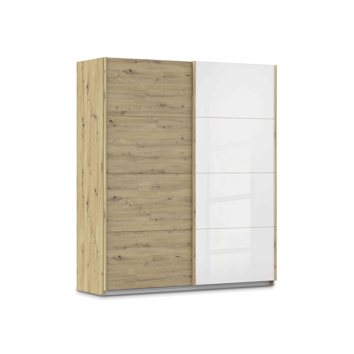 With so many sizes and styles of wardrobe plus chests of drawers, the Rauch Freja collection makes it so easy to create an on-trend and high-end bedroom look. Sliding door and hinged door wardrobes are offered in a choice of door finishes that include glass and decor as well as mirrored and an artisanal oak effect that matches the wardrobes’ frames. And with everything from two-door to five-door wardrobes available, there’s a sleek storage solution for any size of bedroom. Complete the look with a pair of bedside cabinets and a chest of drawers. And because it's made in Germany by Rauch, you’ll know that the Freja range offers exceptional standards of quality as well as unique style. With its artisanal oak-effect frame and gorgeous glass door, this roomy two-door sliding wardrobe has style and storage all wrapped up. Made in Germany by Rauch. Why you'll love it Top-quality bedroom furniture from Rauch. On-trend style with an ultra-sleek finish. In a choice of sophisticated colours for the glass door. Frame and second door have an artisanal oak-effect finish. Sliding doors are soft closing. Superbly designed wardrobe storage with 1 shelf and 1 hanging rail in each section. Customise this wardrobe by adding space-saving and practical interior fittings. This 181 cm 2-door sliding wardrobe is part of the Rauch Freja range. What you need to know Assembled in your home free of charge. This sliding door wardrobe is available in a choice of widths to fit any bedroom. The Rauch Freja range includes sliding and hinged door wardrobes, and chests of drawers. WARNING!