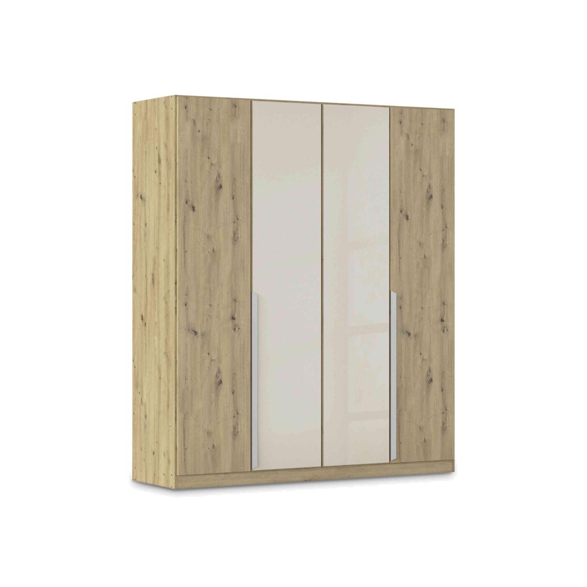 With so many sizes and styles of wardrobe plus chests of drawers, the Rauch Freja collection makes it so easy to create an on-trend and high-end bedroom look. Sliding door and hinged door wardrobes are offered in a choice of door finishes that include glass and decor as well as mirrored and an artisanal oak effect that matches the wardrobes’ frames. And with everything from two-door to five-door wardrobes available, there’s a sleek storage solution for any size of bedroom. Complete the look with a pair of bedside cabinets and a chest of drawers. And because it's made in Germany by Rauch, you’ll know that the Freja range offers exceptional standards of quality as well as unique style. With two sleek glass doors and two rustic oak-effect doors, this Rauch hinged wardrobe showcases striking finishes as well as superb storage. Why you'll love it Top-quality bedroom furniture from Rauch. On-trend style with an ultra-sleek finish. Striking combination of glass and oak-effect doors. Glass doors are available in a choice of sophisticated colours. Artisanal oak-effect frame. Soft-closing doors with metal door handles. Superbly designed wardrobe storage with 1 shelf and 1 hanging rail in each section. Customise this wardrobe by adding space-saving and practical interior fittings. This 181 cm 4-door hinged wardrobe is part of the Rauch Freja range. What you need to know Assembled in your home free of charge. This hinged door wardrobe is available in a choice of sizes to fit any bedroom. The Rauch Freja range includes sliding and hinged door wardrobes, and chests of drawers. WARNING!
