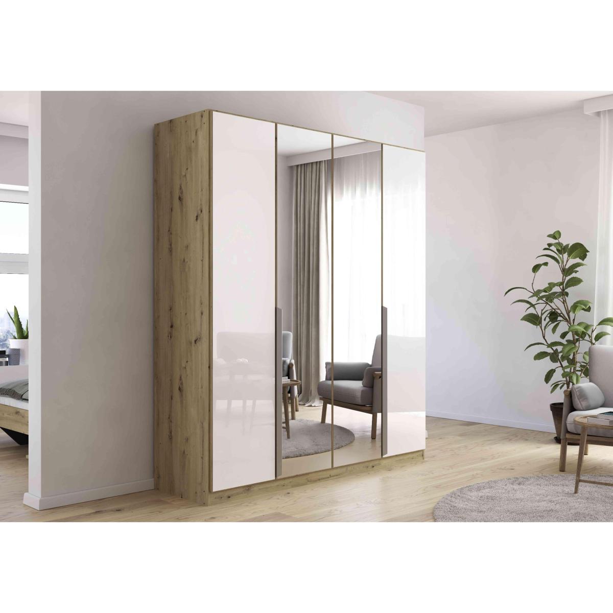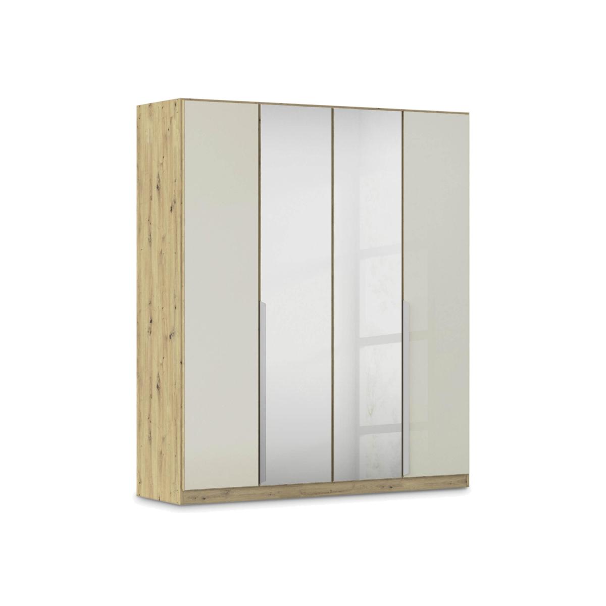 With so many sizes and styles of wardrobe plus chests of drawers, the Rauch Freja collection makes it so easy to create an on-trend and high-end bedroom look. Sliding door and hinged door wardrobes are offered in a choice of door finishes that include glass and decor as well as mirrored and an artisanal oak effect that matches the wardrobes’ frames. And with everything from two-door to five-door wardrobes available, there’s a sleek storage solution for any size of bedroom. Complete the look with a pair of bedside cabinets and a chest of drawers. And because it's made in Germany by Rauch, you’ll know that the Freja range offers exceptional standards of quality as well as unique style. With two full-height mirror doors and two sleek glass doors – in a choice of colours – this large four-door Rauch wardrobe is a stunner. Why you'll love it Top-quality bedroom furniture from Rauch. On-trend style with an ultra-sleek finish. Choice of sophisticated colours for the 2 glass doors. With 2 mirror doors – practical and light-enhancing. Artisanal oak-effect frame. Soft-closing doors with metal door handles. Superbly designed wardrobe storage with 1 shelf and 1 hanging rail in each section. Customise this wardrobe by adding space-saving and practical interior fittings. This 181 cm 4-door hinged wardrobe is part of the Rauch Freja range. What you need to know Assembled in your home free of charge. This hinged door wardrobe is available in a choice of sizes to fit any bedroom. The Rauch Freja range includes sliding and hinged door wardrobes, and chests of drawers. WARNING!