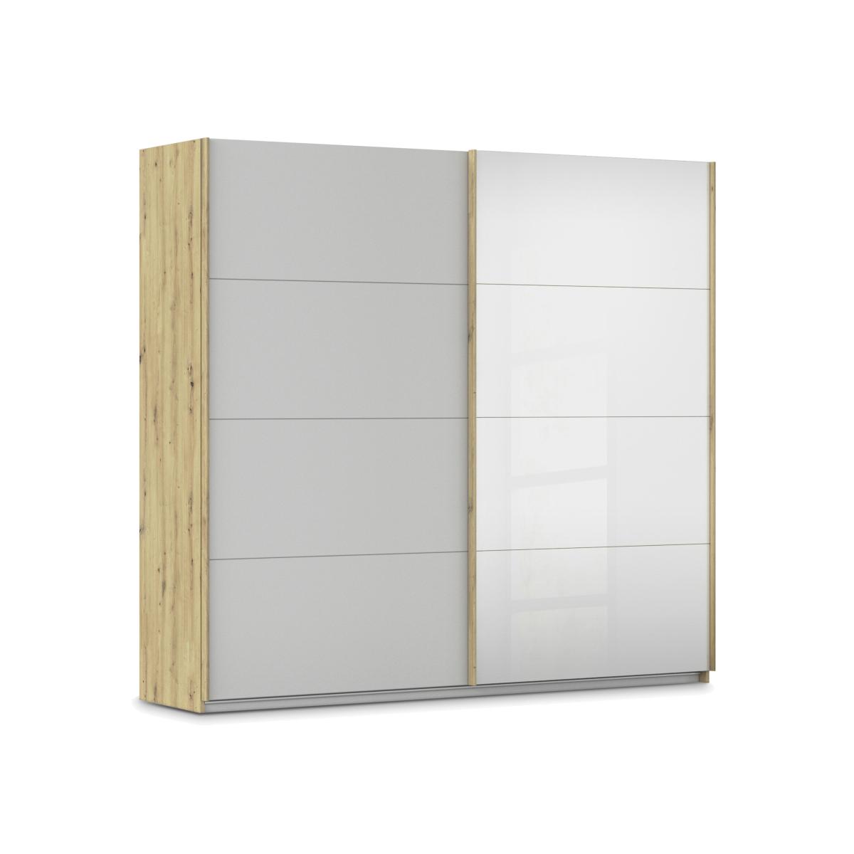 With so many sizes and styles of wardrobe plus chests of drawers, the Rauch Freja collection makes it so easy to create an on-trend and high-end bedroom look. Sliding door and hinged door wardrobes are offered in a choice of door finishes that include glass and decor as well as mirrored and an artisanal oak effect that matches the wardrobes’ frames. And with everything from two-door to five-door wardrobes available, there’s a sleek storage solution for any size of bedroom. Complete the look with a pair of bedside cabinets and a chest of drawers. And because it's made in Germany by Rauch, you’ll know that the Freja range offers exceptional standards of quality as well as unique style. There’s a choice of colours for the decor door of this very large two-door sliding wardrobe. And you’ll love the light-enhancing mirror door too. Why you'll love it Top-quality bedroom furniture from Rauch. On-trend style with an ultra-sleek finish. Practical as well striking with 1 mirrored door and 1 decor door. In a choice of sophisticated colours for the decor door. Frame has an artisanal oak-effect finish. Sliding doors are soft closing. Superbly designed wardrobe storage with 1 shelf and 1 hanging rail in each section. Customise this wardrobe by adding space-saving and practical interior fittings. This 226 cm 2-door sliding wardrobe is part of the Rauch Freja range. What you need to know Assembled in your home free of charge. This sliding door wardrobe is available in a choice of widths to fit any bedroom. The Rauch Freja range includes sliding and hinged door wardrobes, and chests of drawers. WARNING!