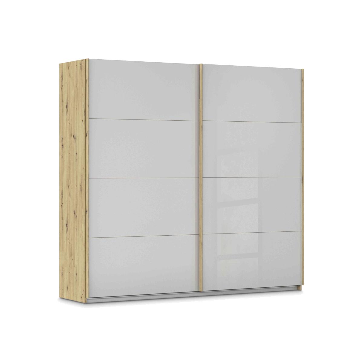 With so many sizes and styles of wardrobe plus chests of drawers, the Rauch Freja collection makes it so easy to create an on-trend and high-end bedroom look. Sliding door and hinged door wardrobes are offered in a choice of door finishes that include glass and decor as well as mirrored and an artisanal oak effect that matches the wardrobes’ frames. And with everything from two-door to five-door wardrobes available, there’s a sleek storage solution for any size of bedroom. Complete the look with a pair of bedside cabinets and a chest of drawers. And because it's made in Germany by Rauch, you’ll know that the Freja range offers exceptional standards of quality as well as unique style. So much storage, so much style. This large sliding door wardrobe from Rauch comes in a choice of colours for its glass doors and makes clothing organisation easy with well-designed interior spaces. Why you'll love it Top-quality bedroom furniture from Rauch. On-trend style with an ultra-sleek finish. In a choice of sophisticated colours for the glass doors. Artisanal oak-effect frame. Sliding doors are soft closing. Superbly designed wardrobe storage with 1 shelf and 1 hanging rail in each section. Customise this wardrobe by adding space-saving and practical interior fittings. This 226 cm 2-door sliding wardrobe is part of the Rauch Freja range. What you need to know Assembled in your home free of charge. This sliding door wardrobe is available in a choice of widths to fit any bedroom. The Rauch Freja range includes sliding and hinged door wardrobes, and chests of drawers. WARNING!