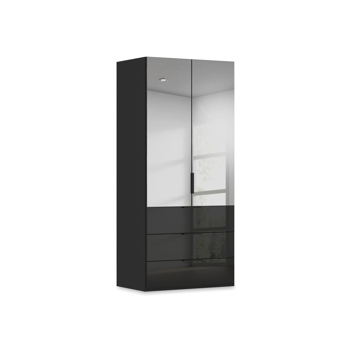 Sleek, modern and minimal, this two- door combi wardrobe makes it easy to create a bedroom that’s a haven of calm and relaxation. With two mirror doors and in a choice of colours for the frame and matching glass drawer fronts. Why you'll love it Enjoy minimal style and maximum storage with our Rauch Haven range. Sleek and modern, this 2- door combi wardrobe helps you create a calm, clutter- free bedroom. The décor frame and glass drawers are available in a choice of fashionable colours. Mirror doors have a subtle grey tint. Well- designed storage space with 3 drawers, 2 shelves and a hanging rail. Stylishly elongated door and drawer handles. Soft- closing doors and drawers. Customise your wardrobe with drawer units, storage dividers, extra shelves and more. Made in Germany. Exclusively at Furniture Village. This 2- door combi wardrobe is part of our Rauch Haven range. What you need to know Delivered, assembled and installed for you free of charge. Standard internal storage comprises 2 adjustable shelves and 1 adjustable hanging rail per compartment. Drawer units, compartment dividers, LED lights and extra shelves and hanging rails are available for this wardrobe at an additional cost. Dust with a lint- free cloth. Do not use silicone- based furniture polishes. You’ll find a huge choice of wardrobes, chests of drawers and more in our Rauch Haven range. WARNING! Furniture can tip over unexpectedly and cause injury. This item must be fixed to a wall using the anti- tip kit provided. Be sure to use the correct wall fixings suitable for the walls in your home. Furniture Village is not able to fix anti- tip devices for you. Seek professional advice if you are unsure.